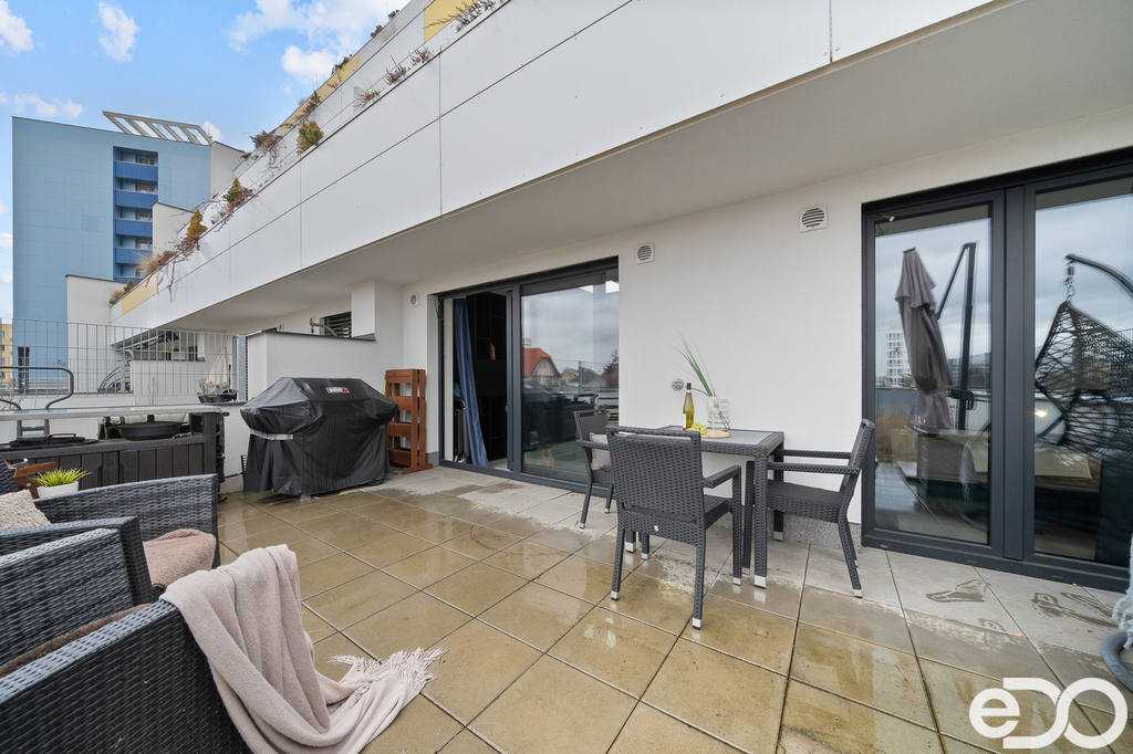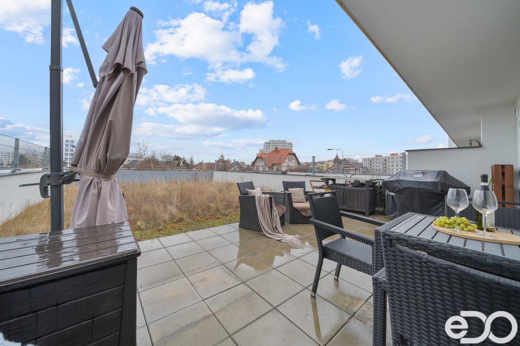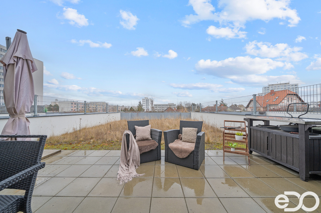 Hledáte moderní bydlení v centru Hradce Králové, které spojuje komfort, design a soukromí? Tento byt v rezidenci Alessandria Vás nadchne hned při první návštěvě. Byt o dispozici 2+kk se nachází ve 3. nadzemním podlaží s výtahem o podlahové ploše cca 85m². Skutečnou raritou je však prostorná terasa se soukromou zahrádkou o velikosti cca 87m² orientovaná na jih – díky francouzským oknům je interiér krásně prosvětlený po celý den a přirozeně propojený s venkovním prostorem. Ideální místo na ranní kávu, večerní sklenku vína i letní grilování. Součástí prodeje je také garážové parkovací stání a sklep (4 m²), což v centru města výrazně zvyšuje komfort bydlení.