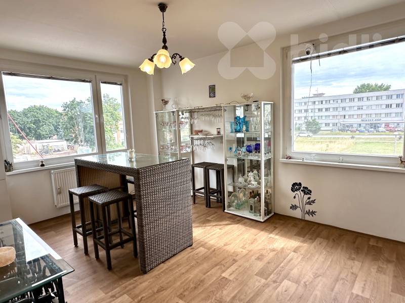 Dispozice bytu byla původně 5+1, aktuálně je řešena jako prostorné 4+1, přičemž návrat k původnímu řešení je bez problémů možný. K bytu náleží balkon, který zajišťuje dostatek světla. Součástí je rovněž sklepní kóje.
