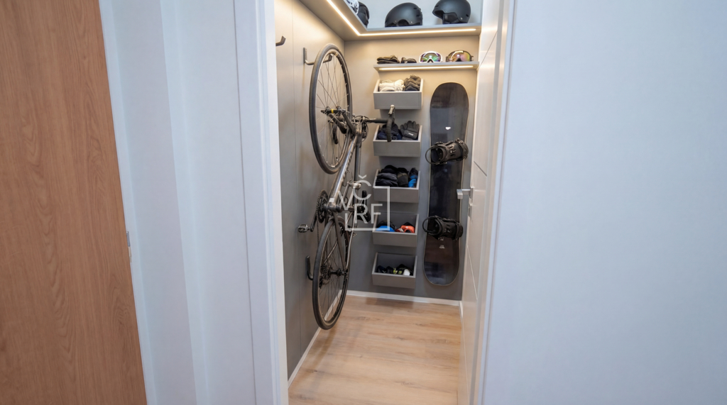 V přízemí obytného domu se nachází kolárna, oddělená místnost pro kočárky a ve společných prostorech je instalován kamerový systém.