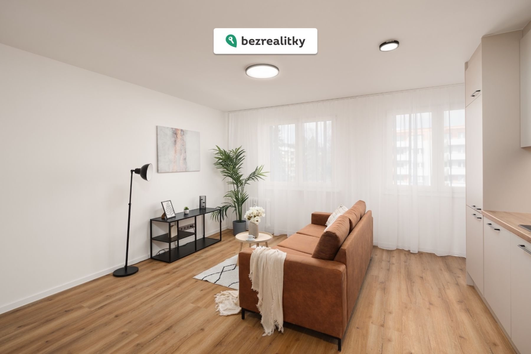 Součástí rekonstrukce bylo kompletní srovnání podlah pomocí nivelační stěrky a následná pokládka lepeného vinylu, který v interiéru přináší nejen vizuální čistotu, ale také vysokou odolnost a uživatelský komfort. V celém bytě byly realizovány nové sádrokartonové stropy a samozřejmostí jsou také zcela nové rozvody elektroinstalace, vody a odpadů, což budoucímu majiteli poskytuje jistotu bezstarostného užívání.