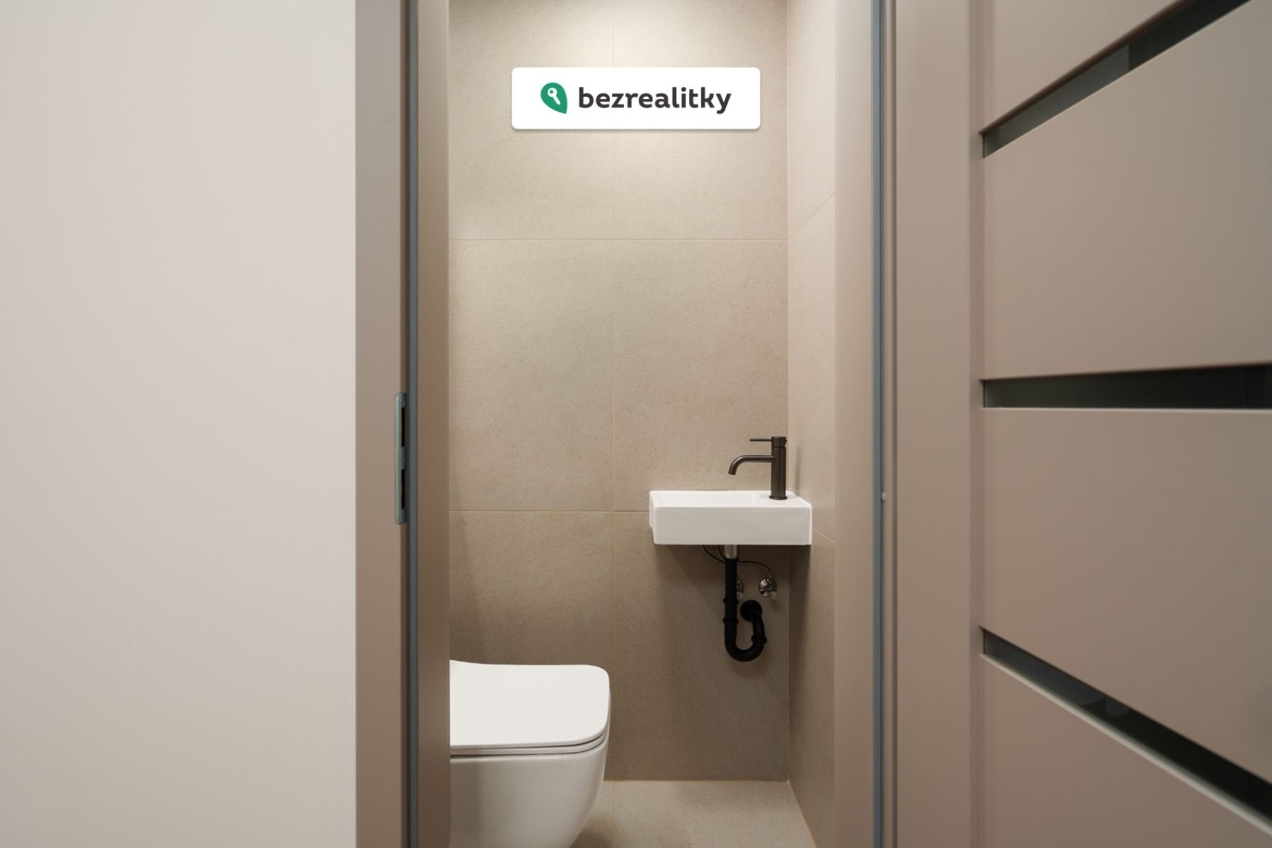 Koupelna je provedena ve vysokém standardu s použitím velkoformátových obkladů a dlažby 80 × 80 cm, precizně zpracovaných kamenických rohů a elegantních podomítkových baterií. Výrazným praktickým benefitem je také samostatné WC, které zvyšuje komfort celé domácnosti a přispívá k funkčnímu rozdělení prostoru.