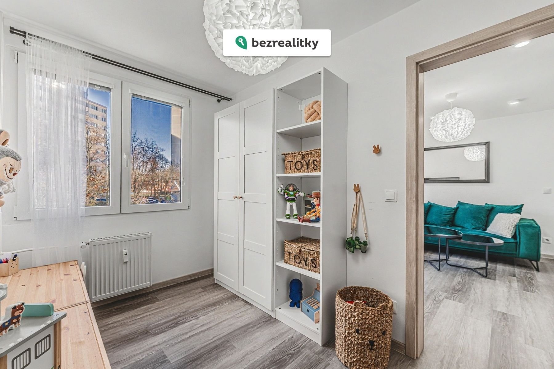 Byt dále nabízí ložnici, další pokoj vhodný jako dětský pokoj či pracovna a samostatné WC.
