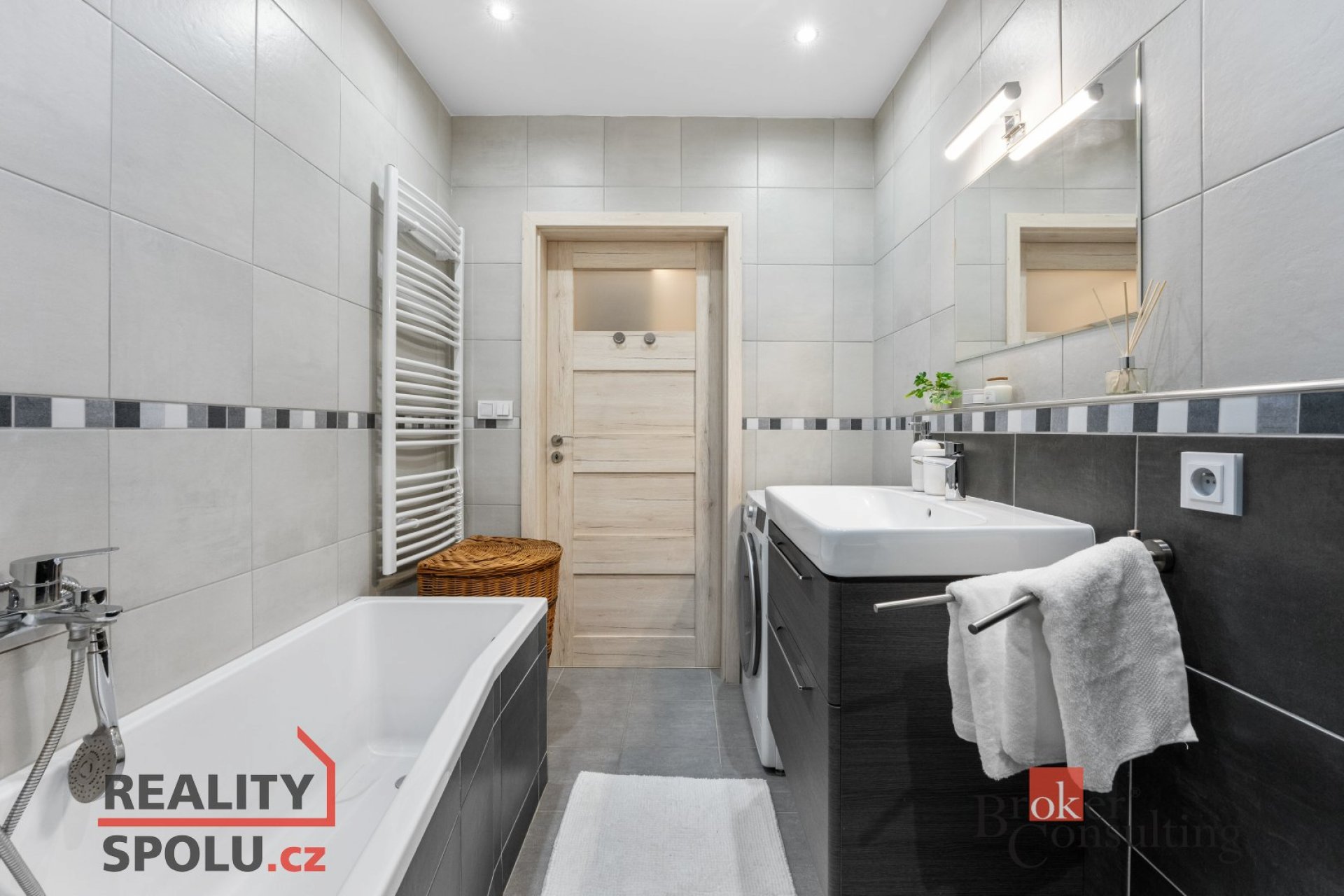 Byt po citlivé celkové rekonstrukci v roce 2020 sloužil pro bydlení, nikoliv k pronájmu, a je to znát na každém kroku! Celý prostor je logicky uspořádaný a zde se opravdu dokonale využil jeho maximální potenciál. Vstoupíte do něj bezpečnostními vchodovými dveřmi a již zádveří prozradí, co Vás zde čeká - keramická dlažba na podlaze v chodbě, posuvné dveře se zrcadlem jako dveře do nově vybudované šatny po pravé straně se spoustou úložných prostor. Po levé straně je koupelna s velkou vanou, toaletou, umyvadlem a osvětleným zrcadlem, samozřejmě zde nenajdete umakartové jádro. Oproti spoustě panelákových bytů se zde krásně vejde pračka i se sušičkou. Naproti vchodovým dveřím je chodba s vestavnou skříní, botníkem a věšákem. Následuje ložnice, která vznikla nově vybudovanou příčkou, aby zde byla zcela samostatná místnost pro odpočinek a klid. Poslední a hlavní částí bytu je obývací pokoj s kuchyní - velkou, prostornou s vestavnými spotřebiči a množstvím úložného prostoru. Ta je na běžné panelákové poměry opravdu praktická a naleznete zde vše potřebné. Obě místnosti mají okna orientovaná na jihovýchod a zaručí tak dostatečný přísun denního světla po celý den. Jednotná vinylová podlaha ve všech místnostech pouze podtrhne atmosféru bytu, kde se budete cítit opravdu velmi příjemně.