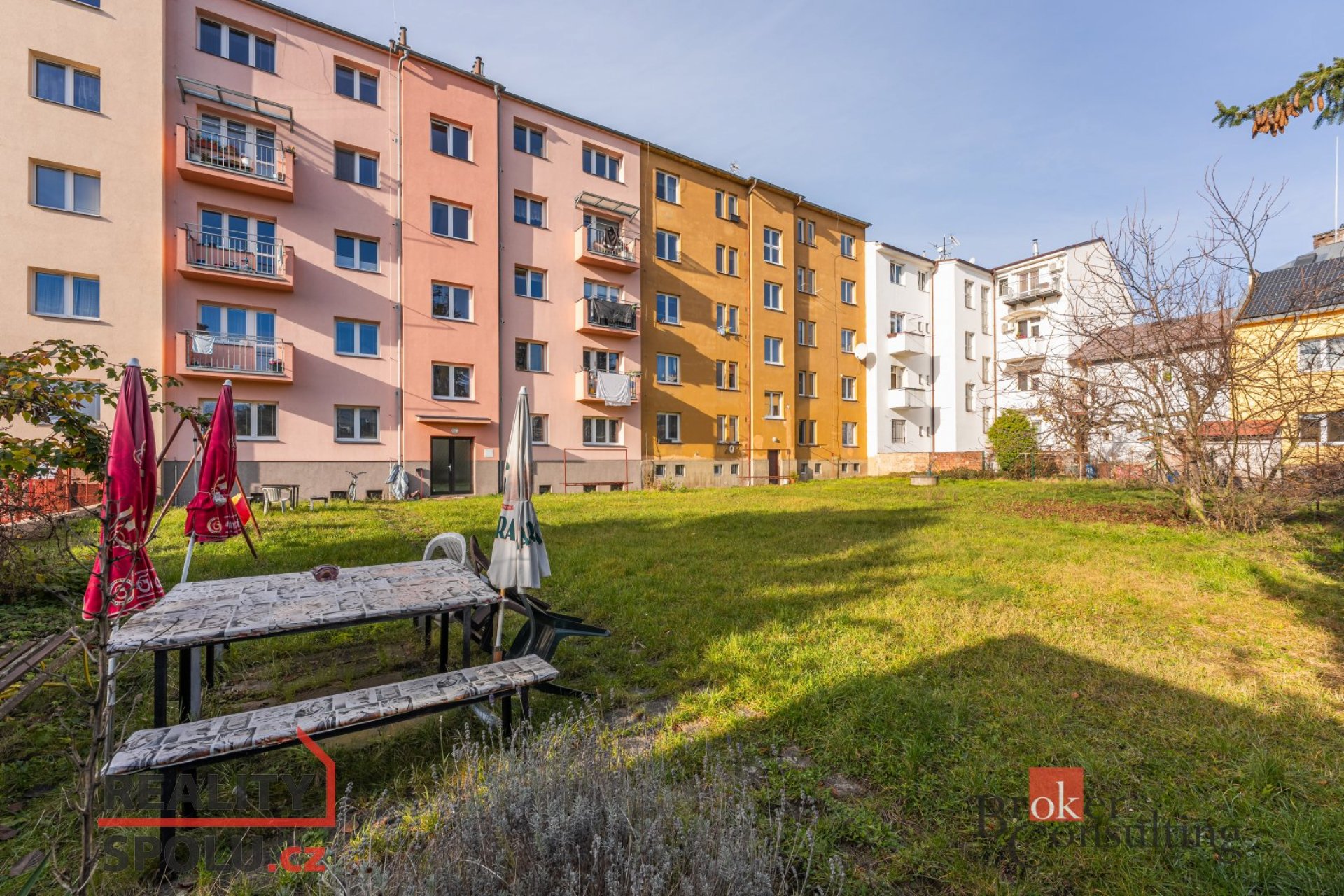 Byt se nachází na Jiráskově náměstí a jeho celková plocha činí (44,9 m²), sklep (4,71m²). Hned u vstupu Vás přivítá praktická vestavěná skříň s botníkovou stěnou, která zůstává k dispozici novým majitelům či nájemníkům. V koupelně zase potěší prostorná rohová vana, ideální pro večery, kdy si chcete dopřát chvilku klidu.
