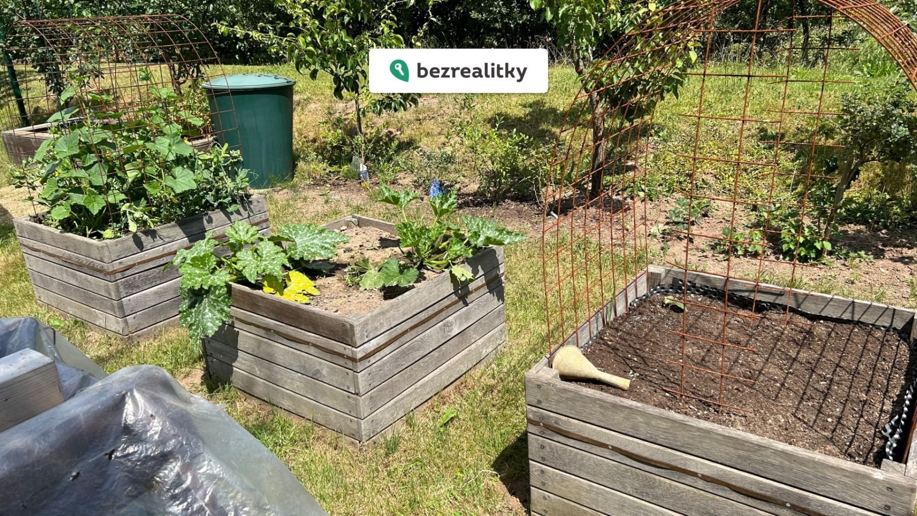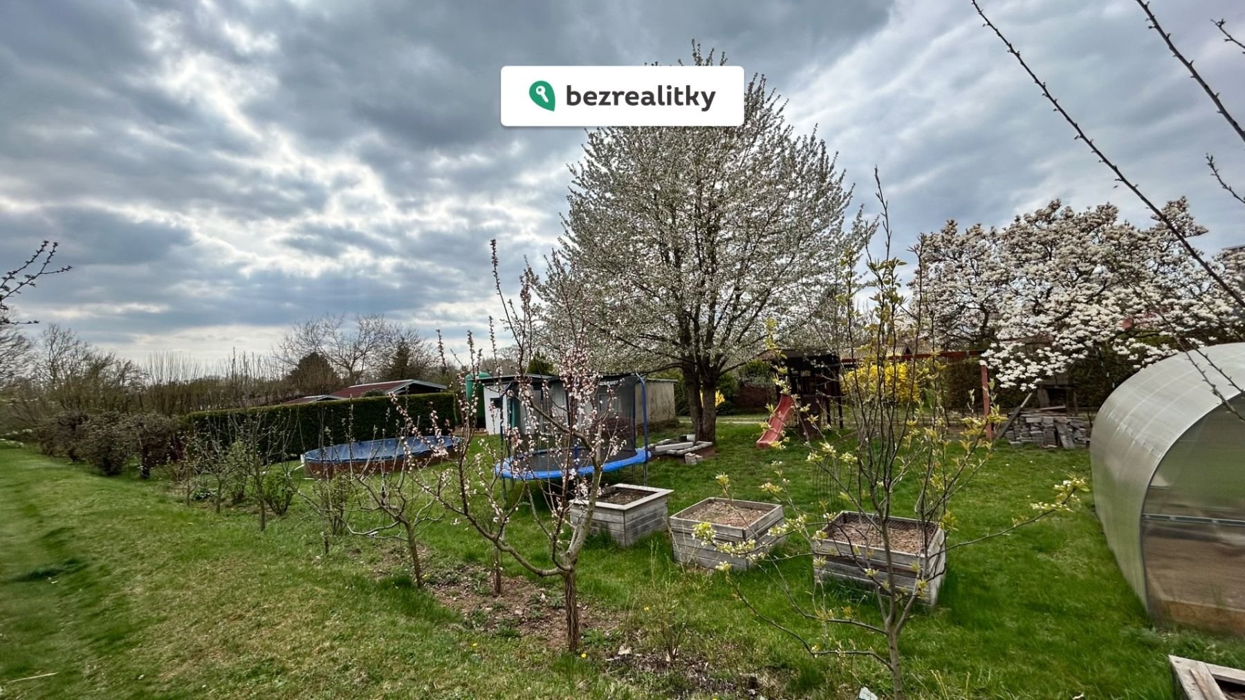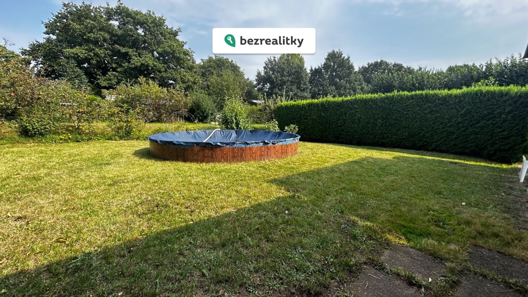 Pozemek se nachází ve skvělém a udržovaném stavu s mnoha ovocnými stromy a keři. Živý plot dodává pozemku soukromí. Součástí prodeje je bazén, trampolína, dětský dřevěný hrad, pískoviště, skleník. Chata slouží momentálně jako sklad pro nářadí, zahradní nábytek a tech. komponenty k bazénu.