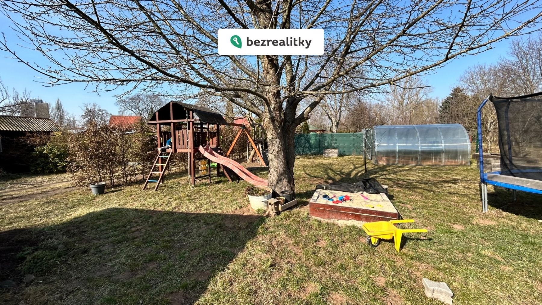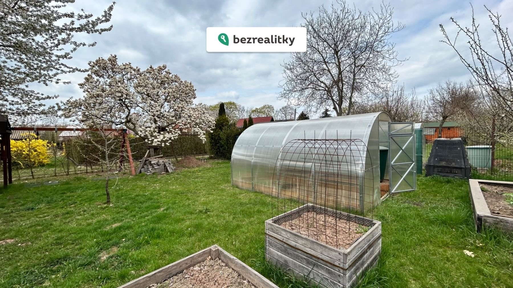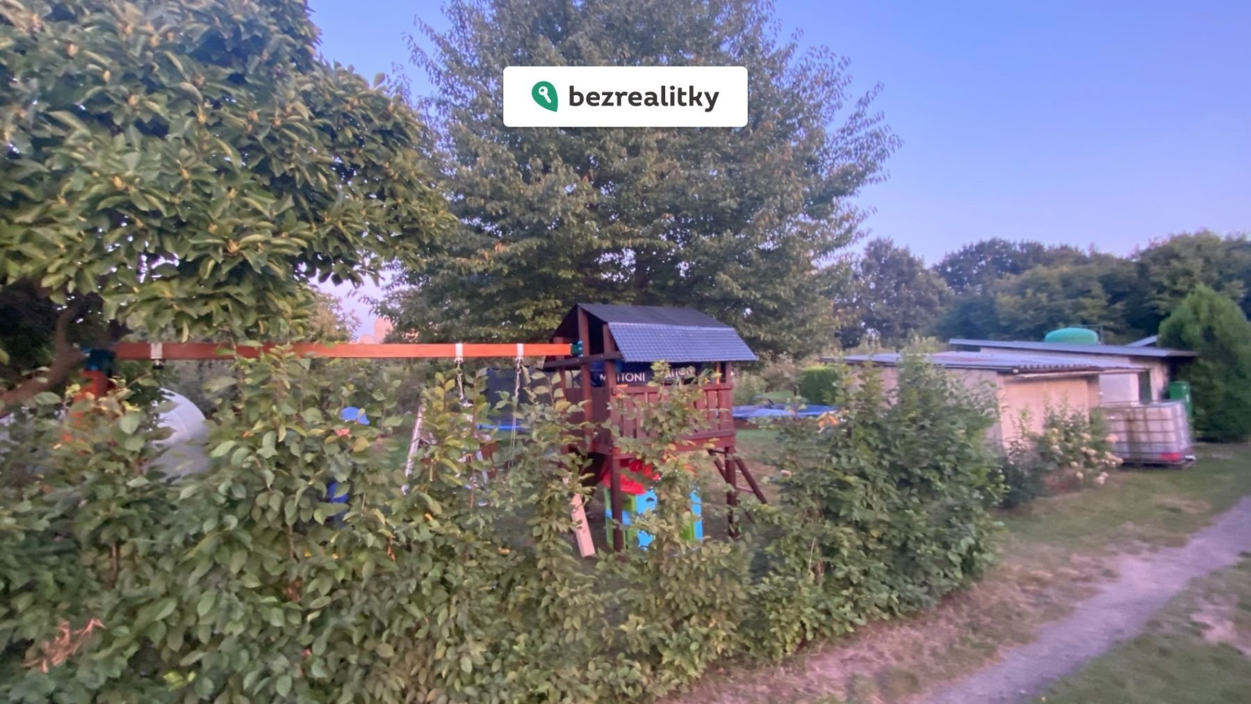 Pozemek se nachází ve skvělém a udržovaném stavu s mnoha ovocnými stromy a keři. Živý plot dodává pozemku soukromí. Součástí prodeje je bazén, trampolína, dětský dřevěný hrad, pískoviště, skleník. Chata slouží momentálně jako sklad pro nářadí, zahradní nábytek a tech. komponenty k bazénu.