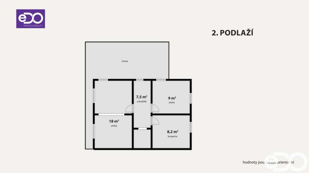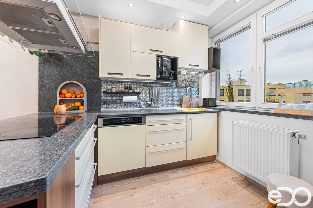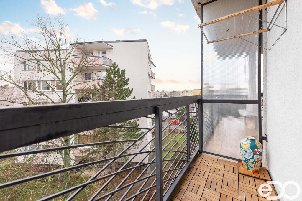 Hlavní předností bytu je prostorná terasa o výměře 25 m² s nerušeným výhledem na Krkonoše a Orlické hory.