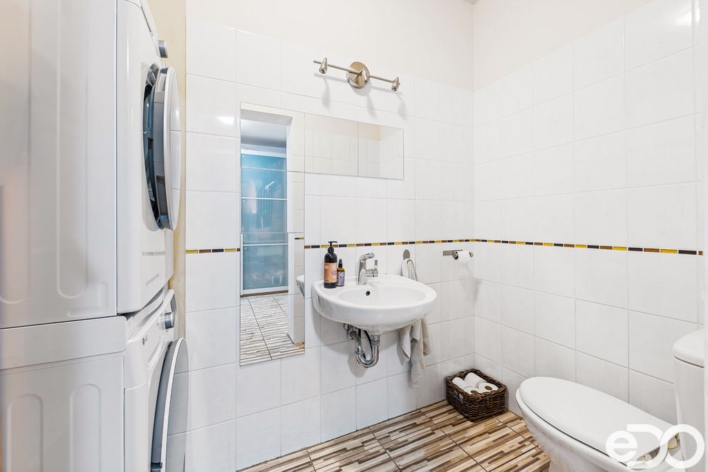 Součástí prodeje je nadstandardní garážové stání přímo v přízemí domu o ploše 28 m², řešené do tvaru L. Poskytuje prostor nejen pro dílnu, ale i úložný prostor – ideální pro sportovní vybavení, kola, kočárky, motorku či hobby projekty.