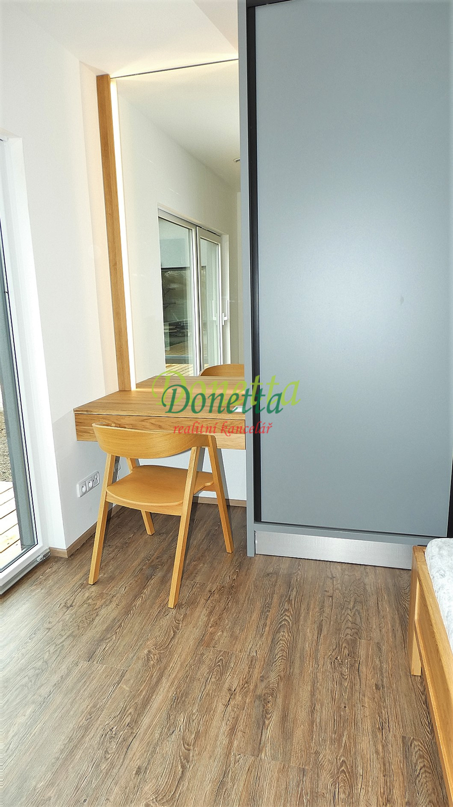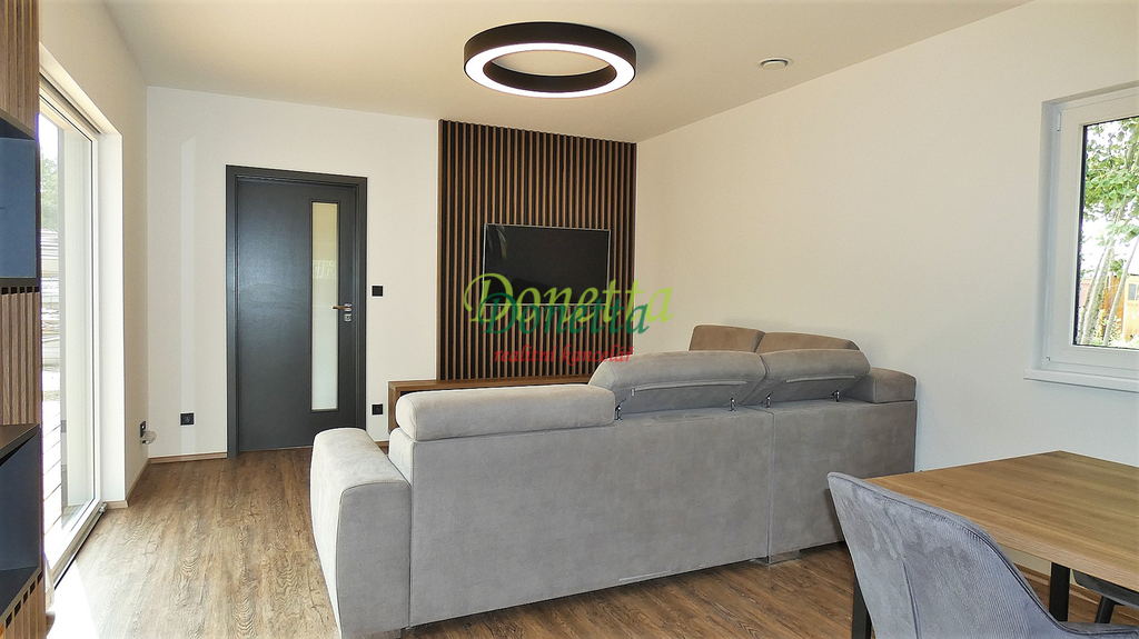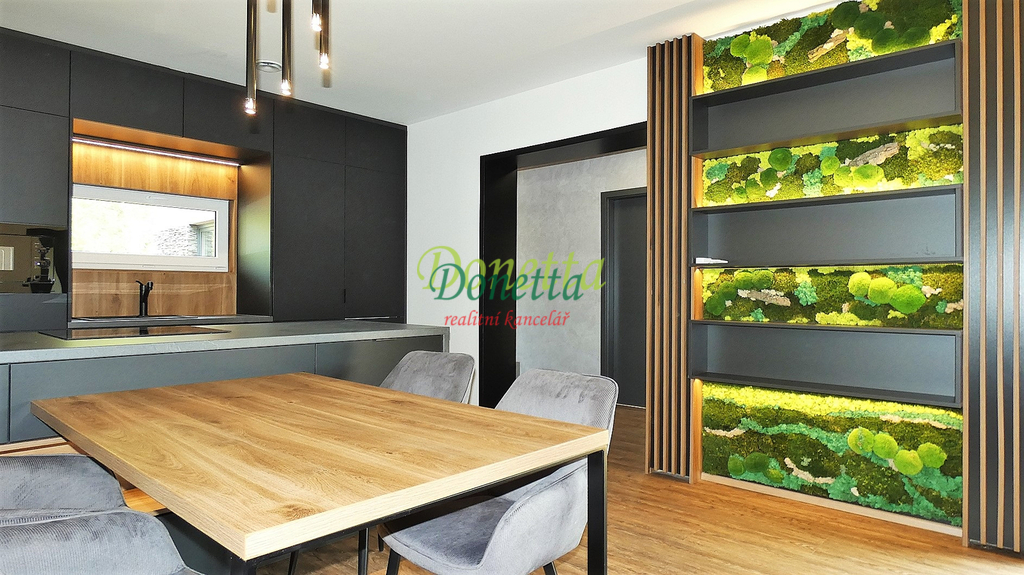 Nabízíme prodej kvalitní a celoročně obytné modulové dřevostavby o dispozici 4+kk. Jedná se o dva montované, na sebe navazující, samonosné moduly 12,25 x 4,45 a 10,25 x 4,45 m. Celková užitná plocha takto uskupeného modulu je 81,17 m2. Výška stropu v obytných částech je 2,5 m, tudíž je možná kolaudace modulu. Dispozice: vstupní chodba, koupelna s rohovou vanou se skleněnou zástěnou, umyvadlem a toaletou, dětský pokoj, další pokoj, případně pracovna, obývací pokoj s kuchyňským koutem a jídelnou a samostatná ložnice. Modul je dodáván kompletně dokončený, včetně rozvodů, podlahových krytin, obkladů, dlažby a sanitárního vybavení. Kuchyňská linka, nábytek a osvětlení nejsou součástí standardního vybavení. Vybavení modulu znázorněné na fotografiích je možné dokoupit za příplatek. Součástí standardního vybavení je rovněž tepelné čerpadlo o výkonu 7,5 kW zajišťující vytápění modulu. Díky tomuto řešení vytápění jsou náklady na provoz modulu minimální. Podlahovou krytinou je vysoce kvalitní vinylová podlaha a keramická dlažba. Okna jsou dodávána plastová s izolačními dvojskly (na přání zákazníka je možná realizace rovněž s trojskly).