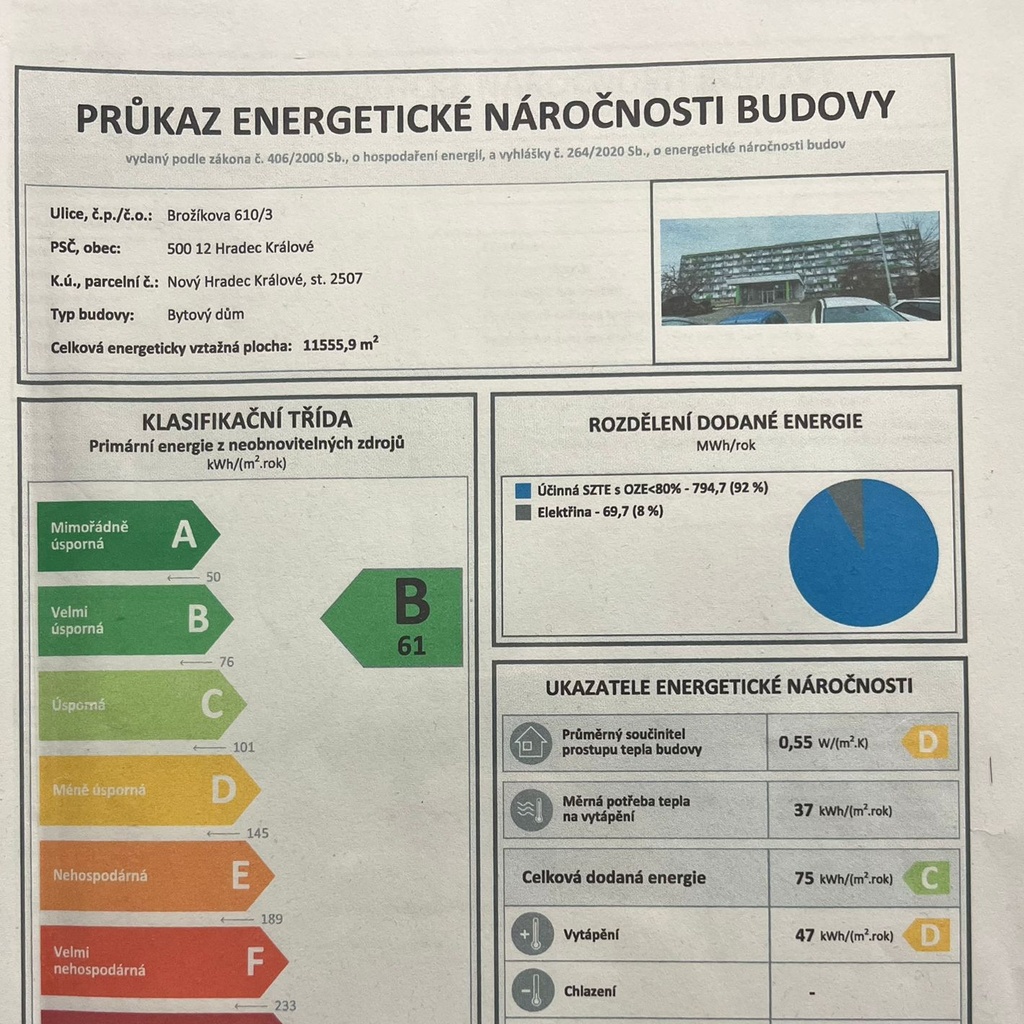 Ukazatel energetické náročnosti budovy:61 kWh/m²