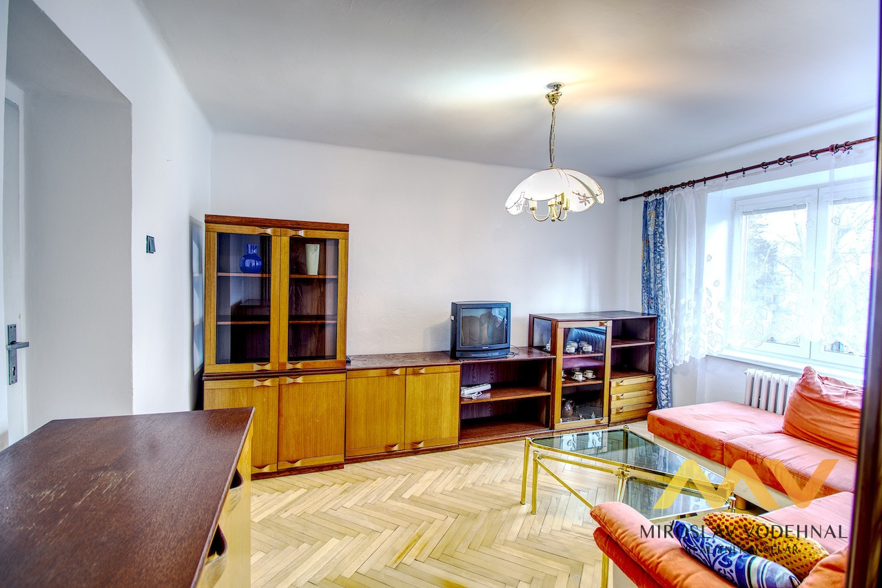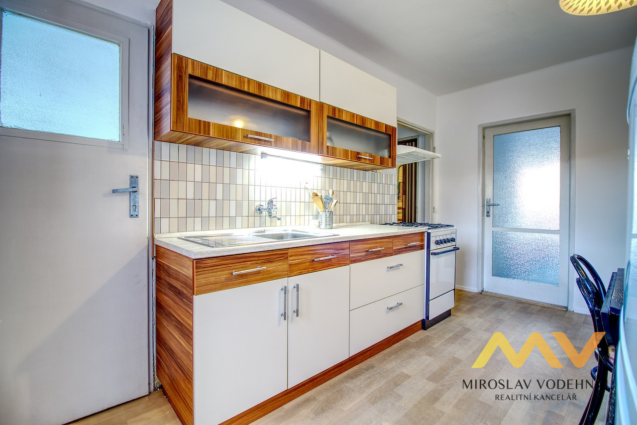 Byt je dispozičně řešen jako kuchyň se spíží, dva samostatné pokoje, koupelna s vanou, samostatné WC, předsíň a komora. Součástí vybavení je sedací souprava, jídelní stůl se židlemi, nová kuchyňská linka s plynovým sporákem, obývací stěna, manželská postel, šatní skříně, pracovní stůl, lednice, mikrovlnná trouba, pračka. Byt může být po dohodě vyklizen. K bytu náleží menší balkón 1 m2. Sklep není k dispozici.
