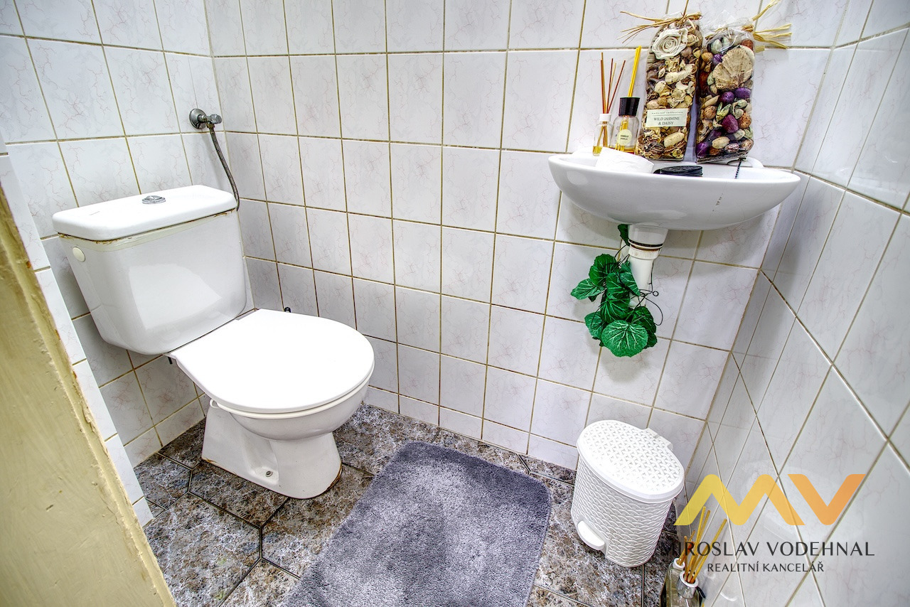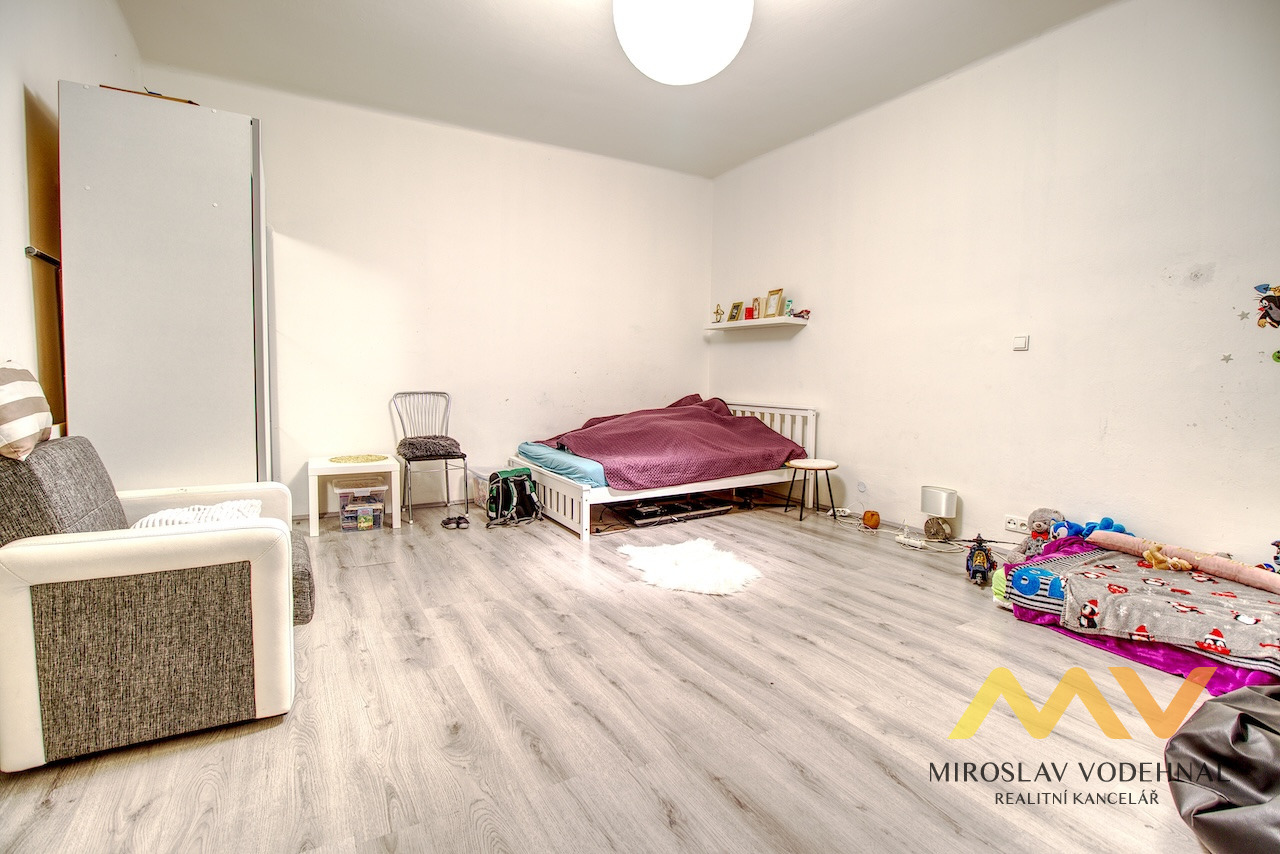 Dispozice: 2x pokoj, kuchyň, koupelna, WC, předsíň. Jedná se o částečně zařízený byt s průchozími pokoji, nová plovoucí podlaha, nová plastová okna. Kuchyň je vybavena starší kuchyňskou linkou s novým komb. sporákem, lednicí s mrazákem, mikrovlnnou troubou. V obývacím pokoji je, jídelní stůl se židlemi. V ložnici velká šatní skříň. Koupelna s vanou, toaleta je samostatně. V prostorné předsíni je prostor na pračku i sušičku prádla. Internet zaveden (300 Kč/měsíc), vytápění lokální (nové wafky), ohřev vody el. bojlerem. Ve vnitrobloku za domem je zeleň a hřiště. Sklep není k dispozici.