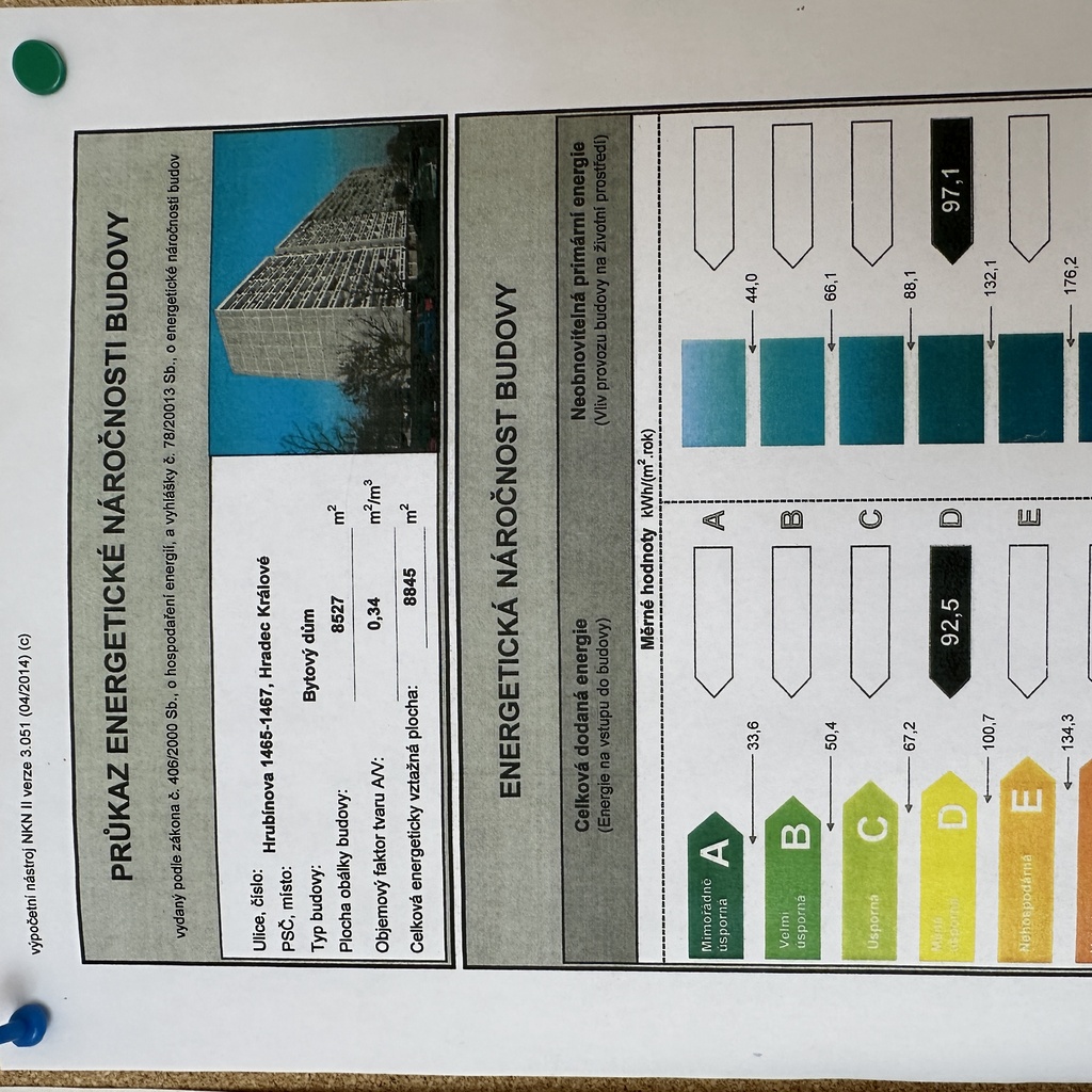 Ukazatel energetické náročnosti budovy:92 kWh/m²
