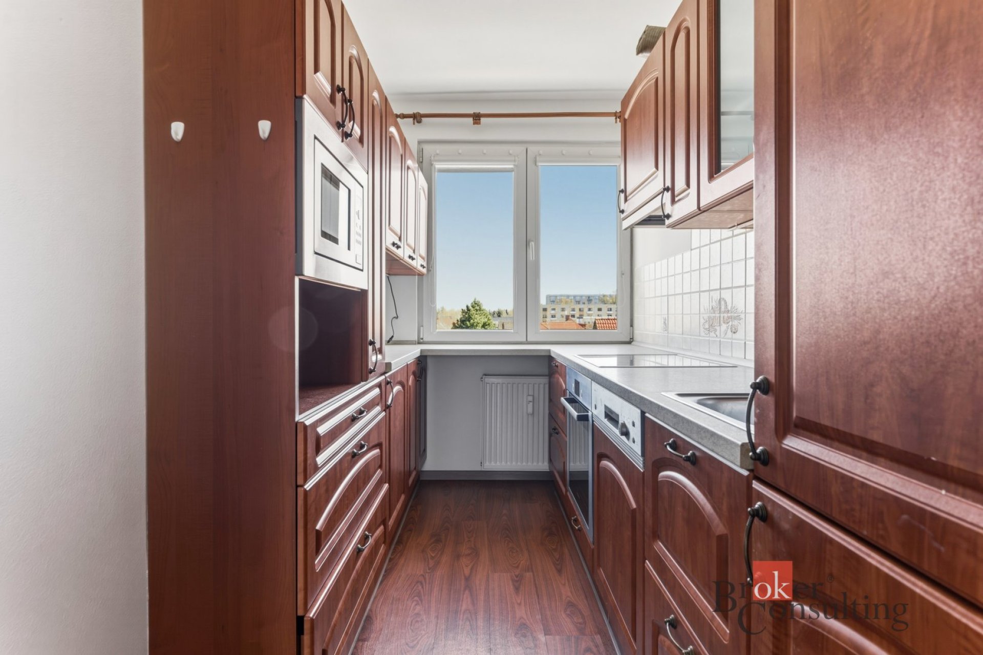 Dále prostřední pokoj, kuchyňská linka, jejíž součástí jsou spotřebiče jako lednice s mrazákem, horkovzdušná trouba, indukční varná deska, digestoř, mikrovlnná trouba, a bonusově je možné po dohodě zajistit i myčku. Praktické úložné skříňky vám usnadní organizaci a prostorná pracovní plocha se stane ideálním místem pro kulinářské dobroty.
