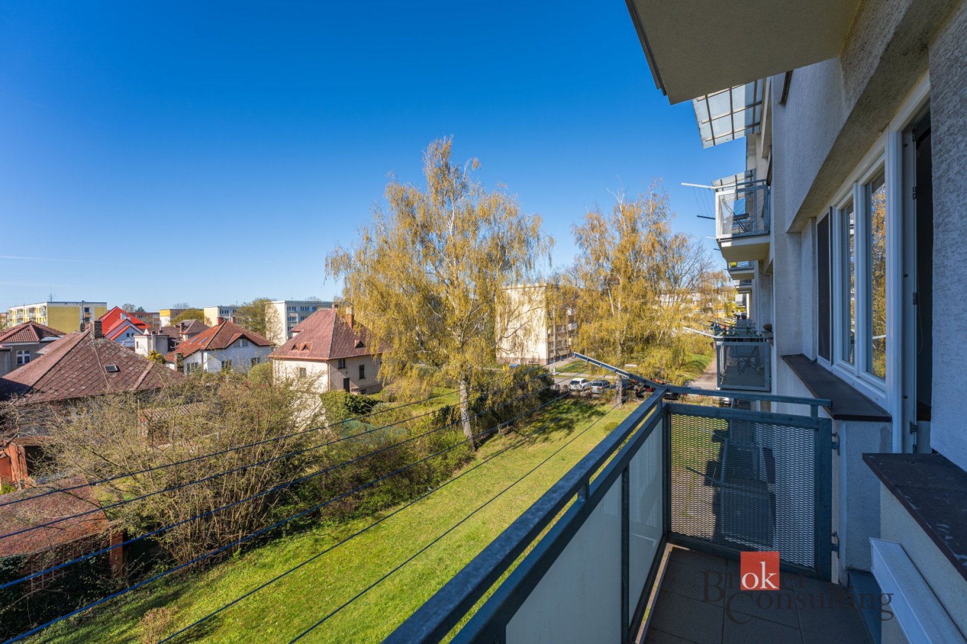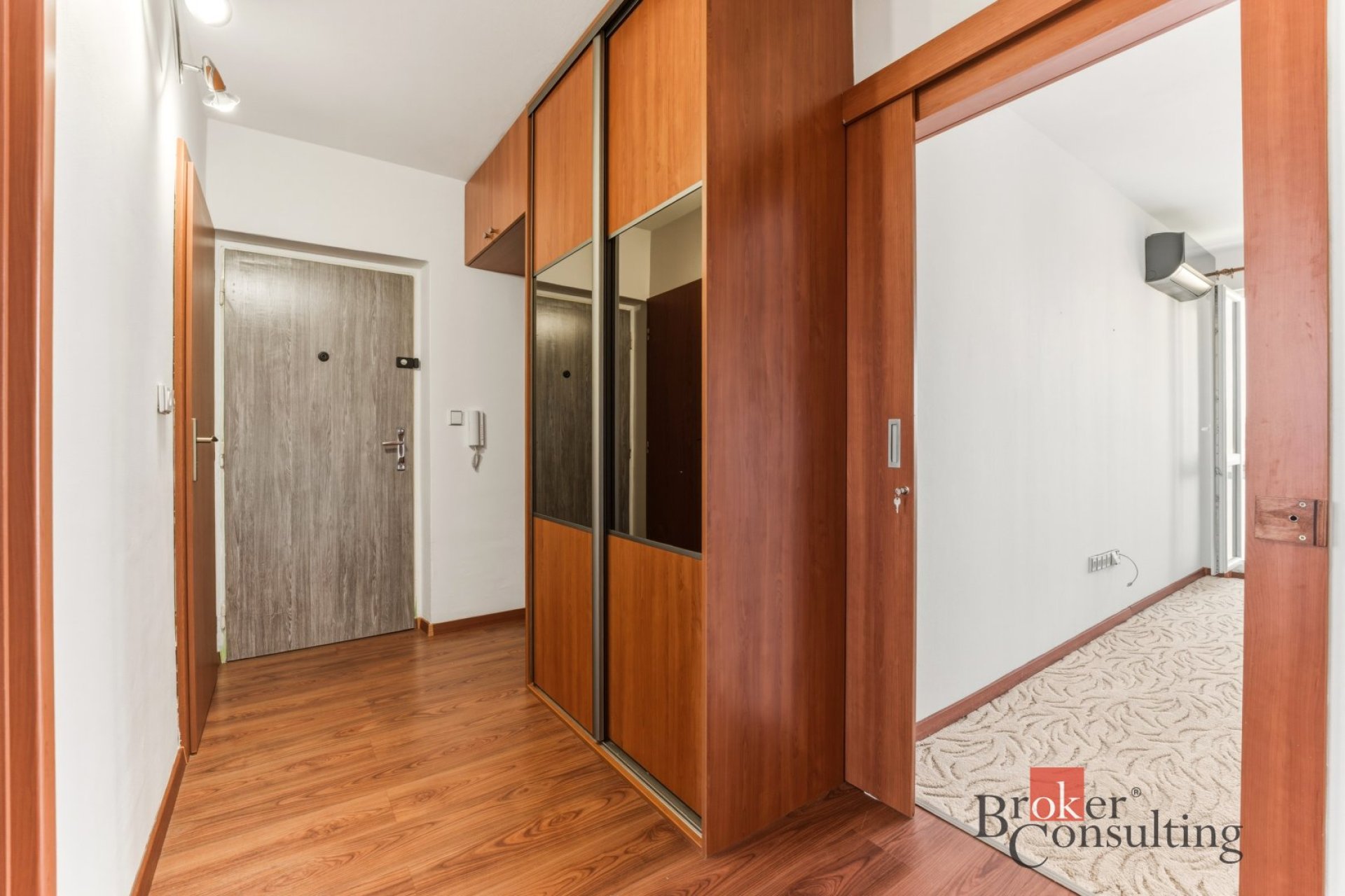 Co se týče rozmístění: Při vstupu do bytu se po levé straně nachází samostatný pokoj. Z předsíně se pak dostanete do obývacího pokoje, na který navazuje balkon s výhledem do zeleně, kde si vychutnáte nejen ranní kávu, ale i romantický západ slunce. Obě tyto místnosti disponují klimatizací, která zajistí ochlazení i během horkých letních dnů.