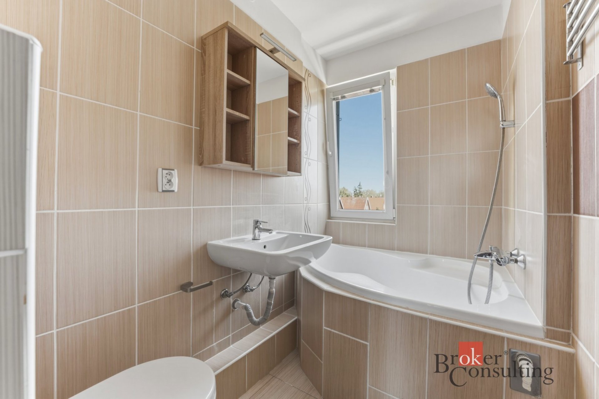 V předsíni je na míru připravena vestavěná šatní skříň se zrcadlem, která nabídne dostatek místa pro vaše věci. Poslední zastávkou je koupelna – místo, kde si odpočinete v rohové vaně a kde je také toaleta, místo pro pračku i sušičku.