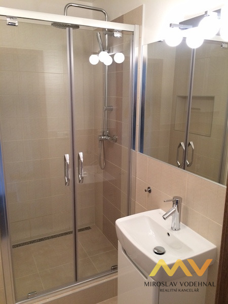 Byt je vybaven zcela novou kuchyňskou linkou včetně el. sklokeramické dvojplotýnky, vestavné el. trouby, digestoře a ledničky. Nové zděné jádro, koupelna se sprchovým koutem a WC, přípojka na pračku. Výhled do zeleně a vilové čtvrti. Orientace bytu je na jihozápad. K bytu náleží sklepní kóje a na patře společná komora na kola. Byt je klidný, žádný ruch od sousedů. Dům je po zateplení s 2 výtahy (nákladní a osobní). Parkování před domem bez poplatků.