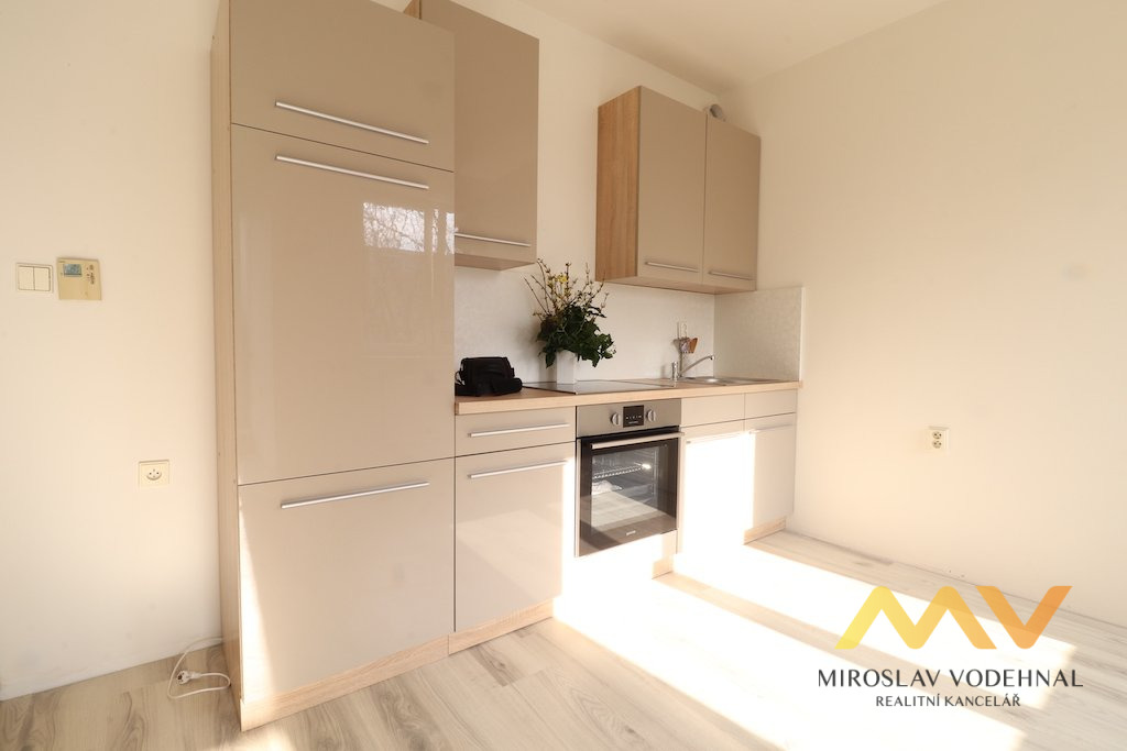 Jedná se o bezbariérový, tichý a slunný byt po částečné rekonstrukci (kuchyňská linka, podlaha) s výhledem do přírody. Dispozice: obývací pokoj s kuchyňským koutem, koupelna s WC, předsíň. Kuchyňská linka vybavena el. troubou a sklokeramickou deskou, lednicí d mrazákem. Koupelna s vanou, umyvadlo se zrcadlem a pračka. V předsíni velká vestavěná skříň na míru. Klidné bydlení, okna orientována na J-Z. K dispozici sušárna, kolárna, sklep není. Kompletní občanská vybavenost, MHD, parkování před domem bez poplatků. Bez zvířat. Internet zaveden (není v ceně nájmu).