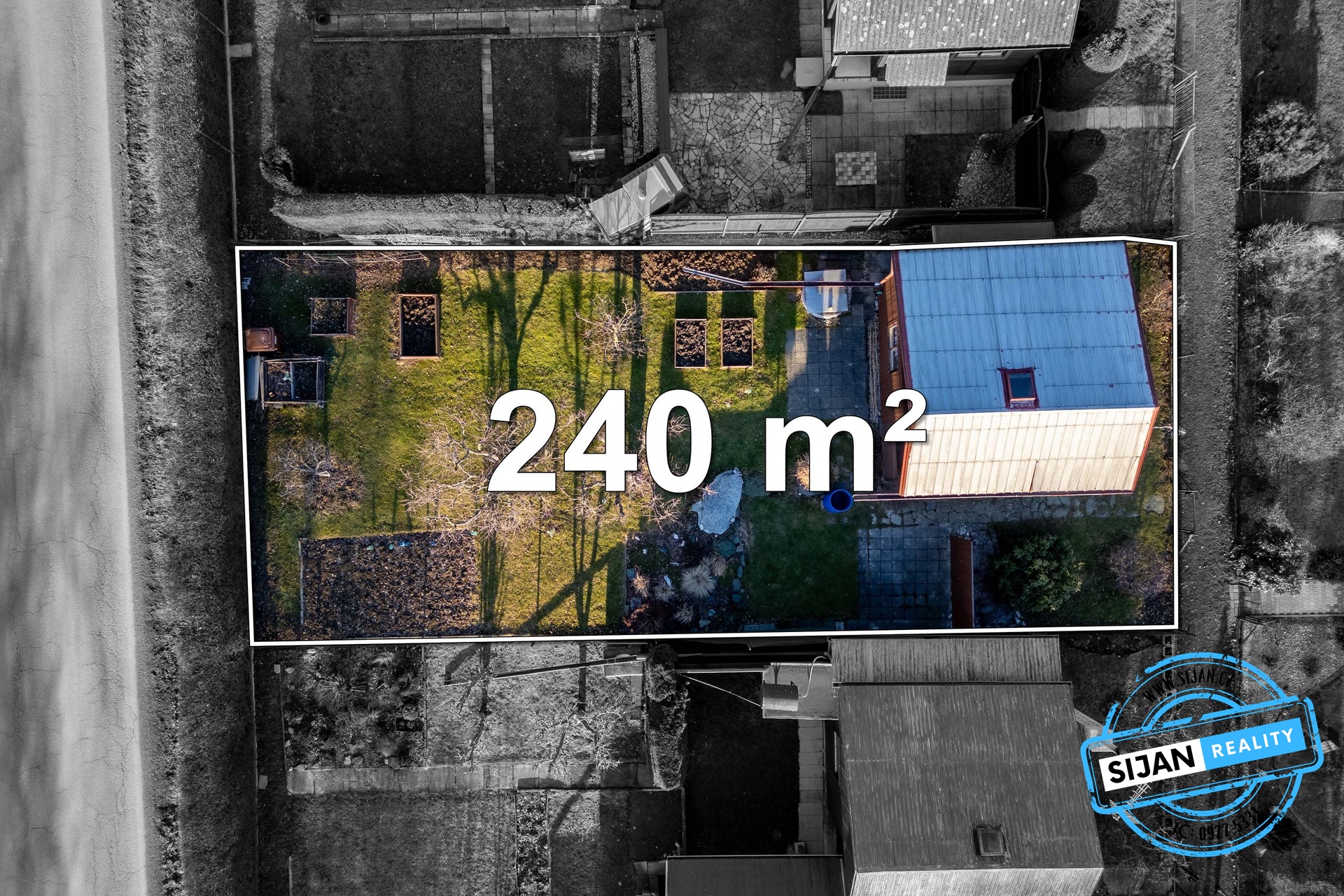 K chatě náleží 2 pozemky o celkové rozloze 240 m². Dále podíl na společném pozemku, který je využíván pro parkování.