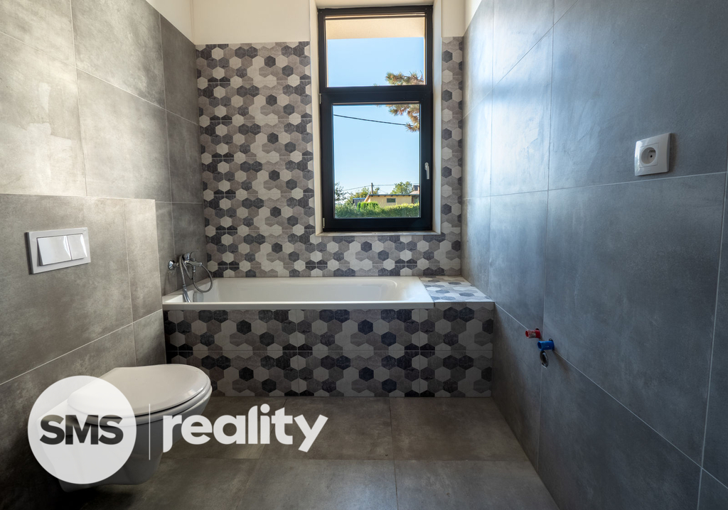 V bytě už na Vás čeká moderní kuchyňská linka v bílé barvě, (v době focení nebyla ještě zhotovena), vybavená všemi potřebnými spotřebiči – elektrickou troubou, varnou deskou a digestoří. Koupelna je elegantně řešena s použitím moderních obkladů a vybavena buď prostornou vanou, nebo sprchovým koutem.