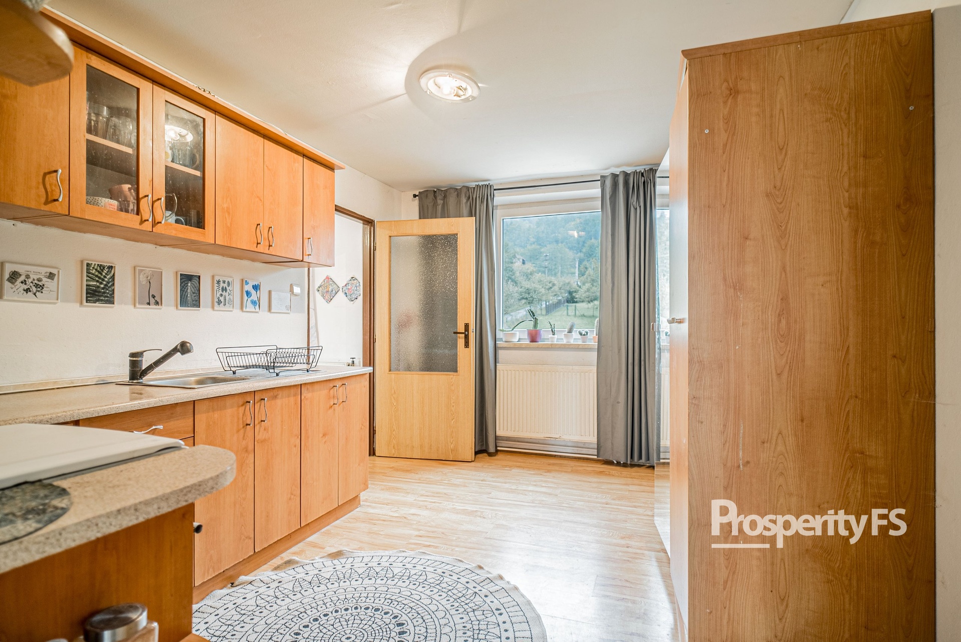 V přízemí naleznete velkou kuchyni, dvě světlé obytné místnosti, připravený prostor pro koupelnu, samostatné WC a technickou místnost. Ve druhém patře se pak rozprostírá taktéž kuchyň, dvě prostorné místnosti a koupelna s rohovou vanou. Dům je kompletně podsklepený s několika dalšími místnostmi, kde je kotel na tuhá paliva, plynový kotel a dvě akumulační nádoby, napojeny na solární ohřev. Nechybí ani půdní prostor, který nabízí prostor pro další využití.