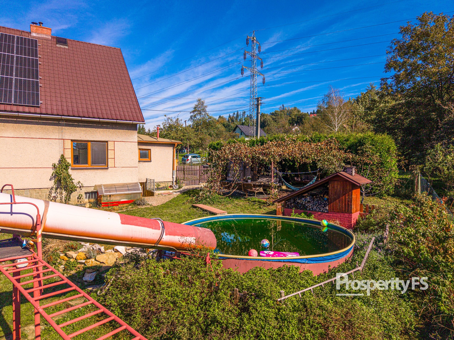 Velký pozemek o rozloze 942 m² poskytuje soukromí a krásný výhled na Beskydy. Součástí je letní altánek s posezením, domácí udírna, zapuštěný bazén, velký kotec pro psy a vzrostlé ovocné stromy a keře. Parkování pro dvě auta je zajištěno přímo na pozemku, který je celé oplocený.
