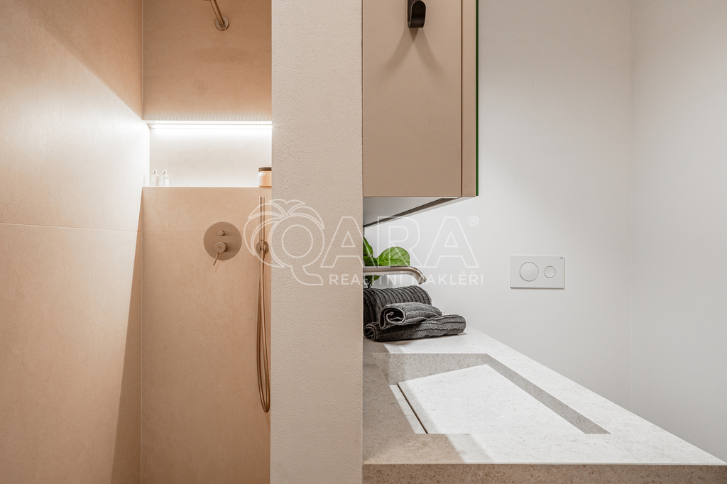 • Obytný prostor s kuchyní na míru, ostrůvkem a spotřebiči Smeg a Samsung