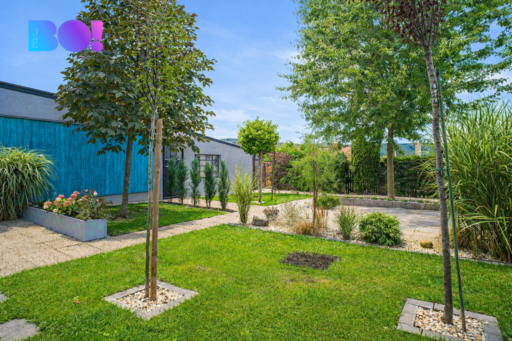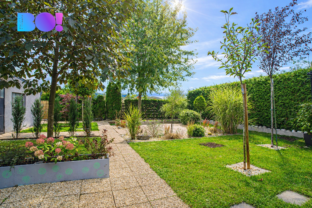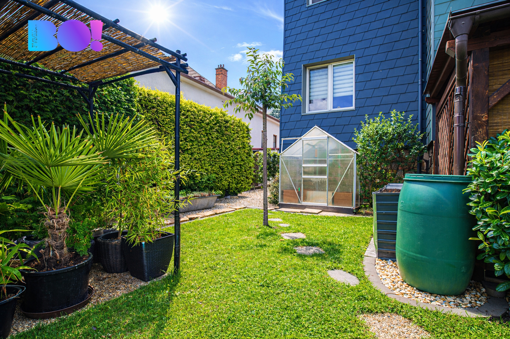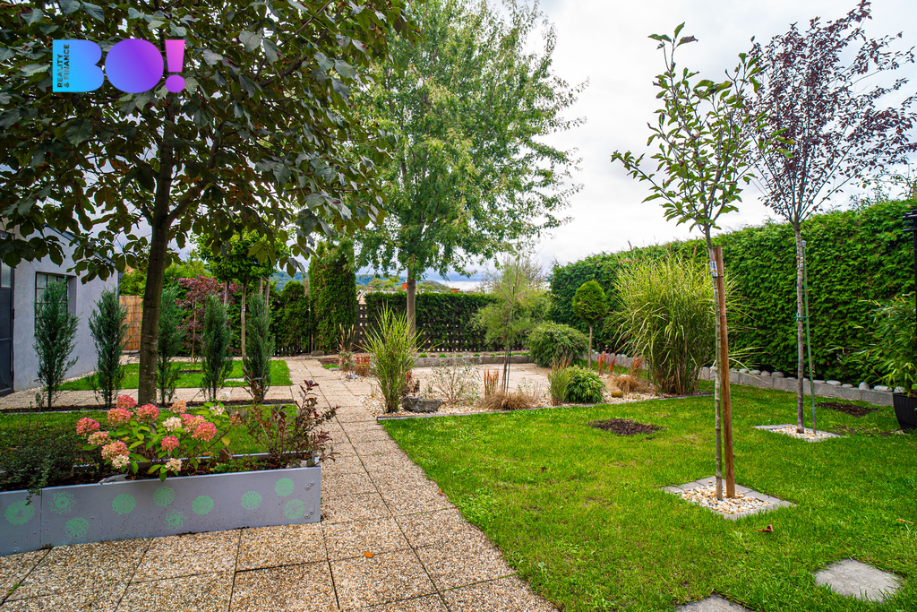 Celý dům stojí na rovném a slunném pozemku o velikosti 809 m², který nabízí mnoho možností využití – od zahradního posezení, výstavby pergoly až po malý bazén nebo dětské hřiště.