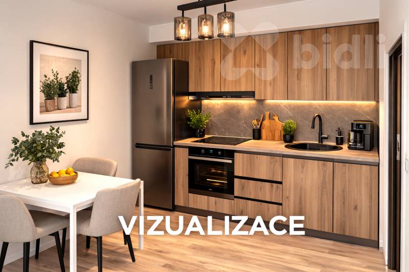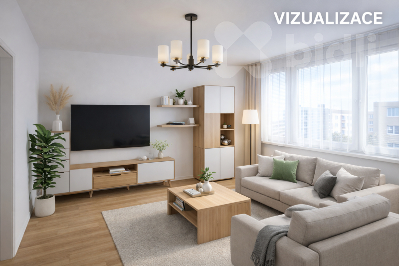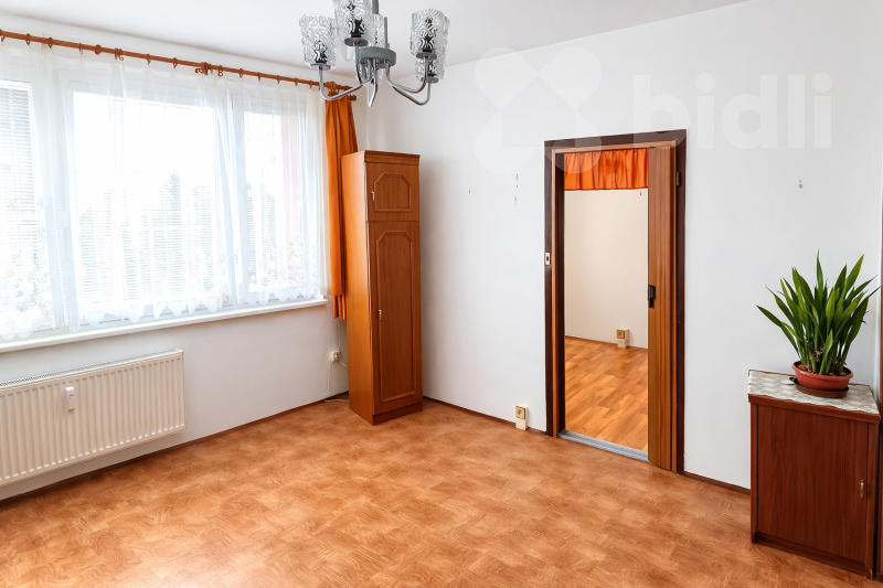 Dispozice bytu tvoří vstupní chodba se skříněmi a botníkem, ze které se vstupuje do koupelny s WC, dále do obývacího pokoje, ze kterého je přístup do kuchyně. Druhý pokoj má samostatný vstup z chodby a zároveň je průchozí z obývacího pokoje. Kuchyň i koupelna jsou v původním stavu a bytové jádro tak nabízí možnost modernizace podle vlastního vkusu. Podlahy tvoří PVC, částečně doplněné kobercem. Byt se prodává částečně vybavený a náleží k němu také sklepní kóje. Bytový dům prošel v minulosti rekonstrukcí, včetně zateplení fasády a výměny plastových oken (2025). K dispozici je také kolárna a sušárna a před domem jsou dobré parkovací podmínky. Byt je družstevní s možností převodu do osobního vlastnictví za nízké náklady spojené s převodem.