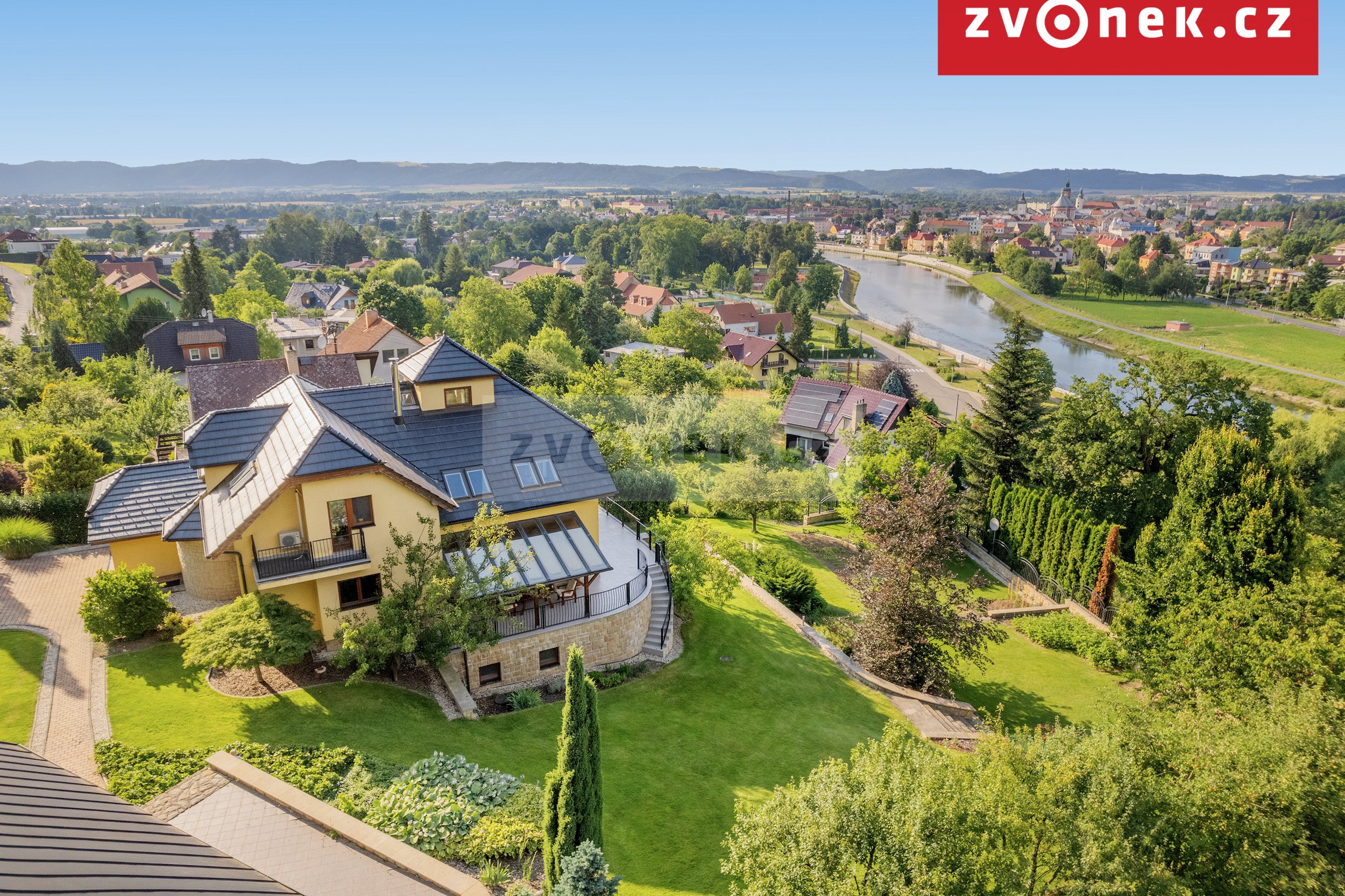 Z bazénové části je stejně jako z velké venkovní terasy obývacího pokoje přístup do krásné udržované zahrady, ze které se otevírá, stejně jako ze všech oken v domě, výhled na řeku Bečvu, lesy a celé Hranice. Na terase se nachází zastřešené venkovní posezení, moderní udírna a připojení pro gril.
