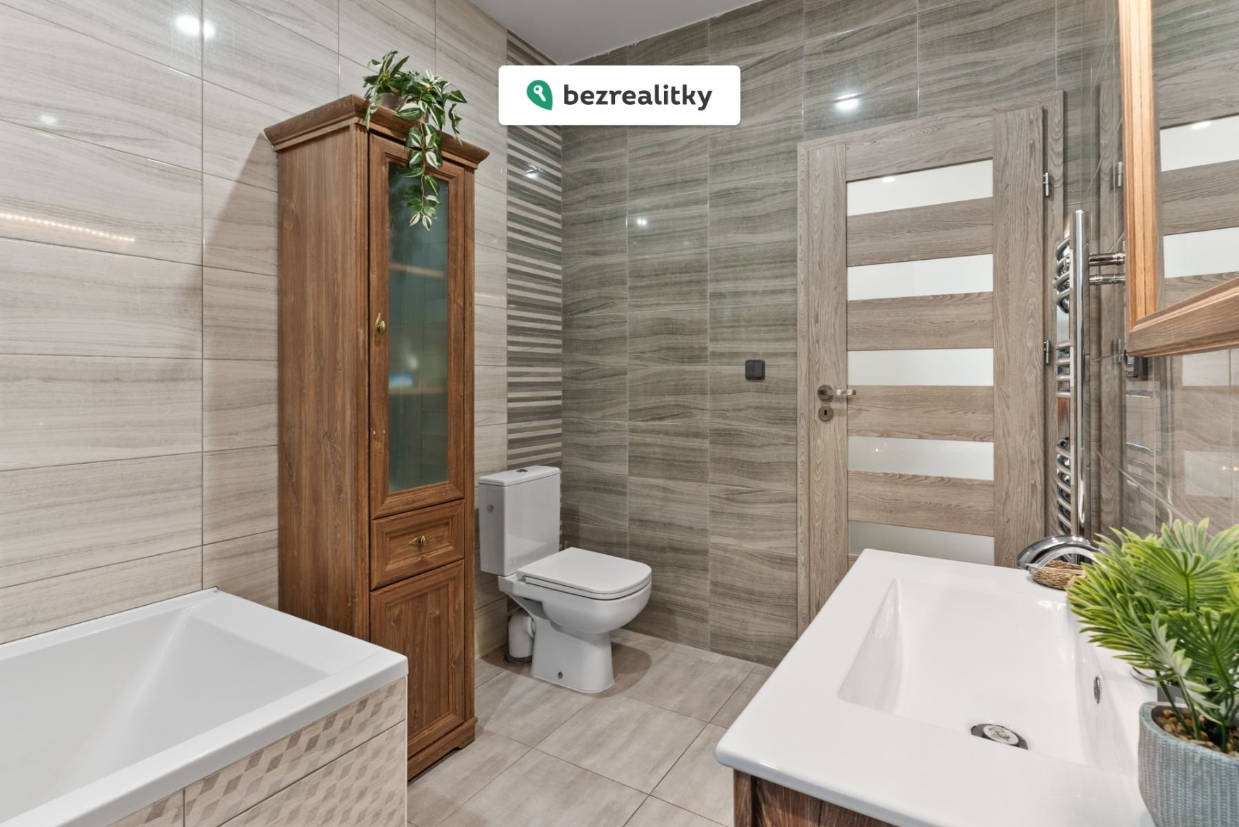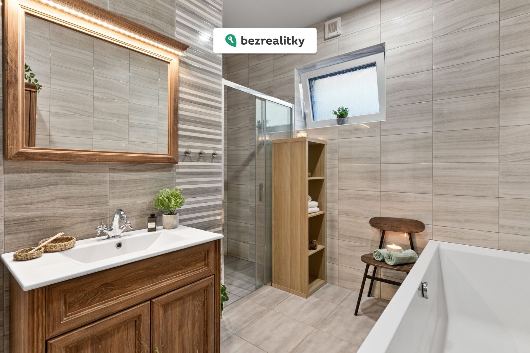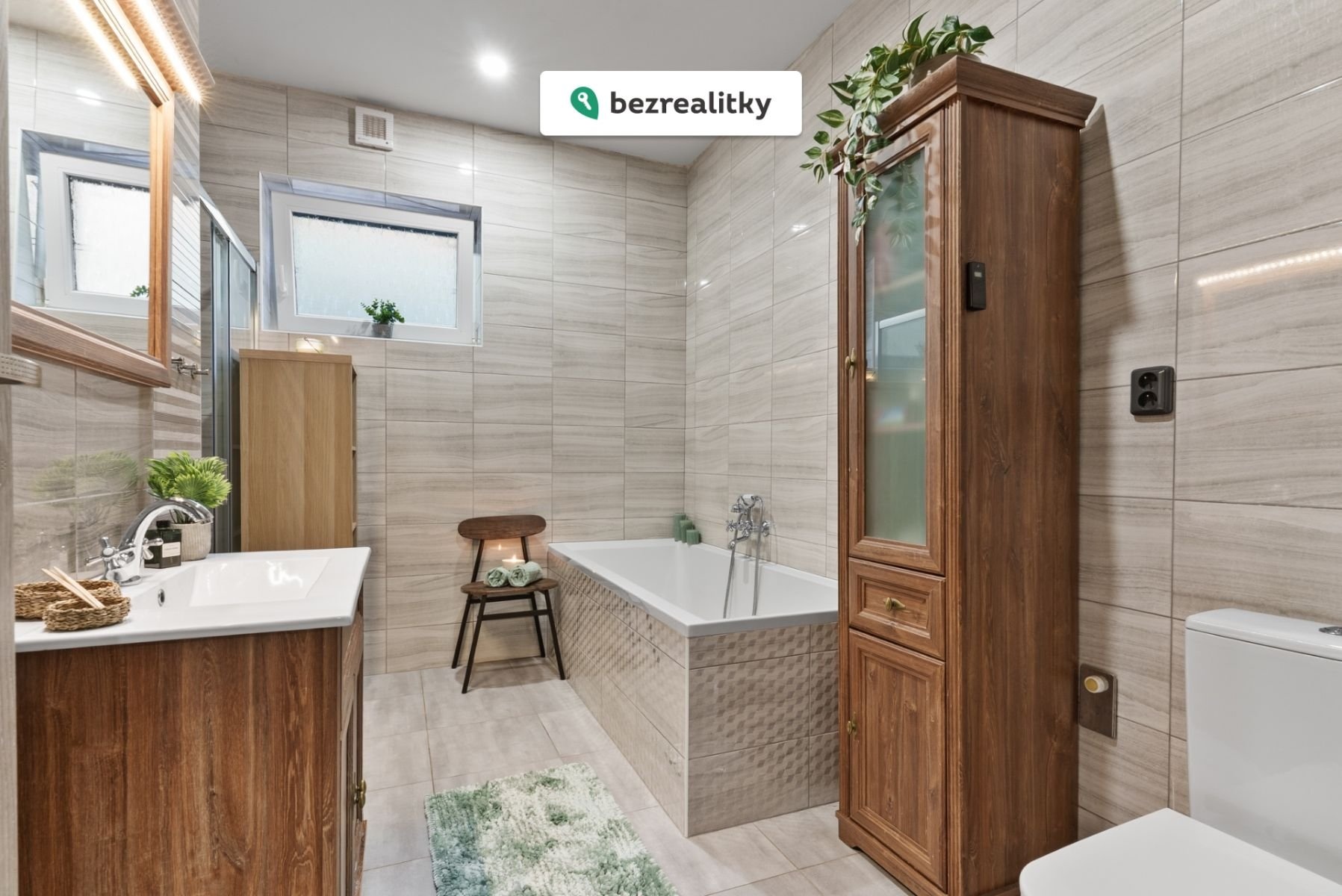 • prostornou koupelnu kombinující moderní design a funkčnost - elegantní vana + stylový sprchový kout,