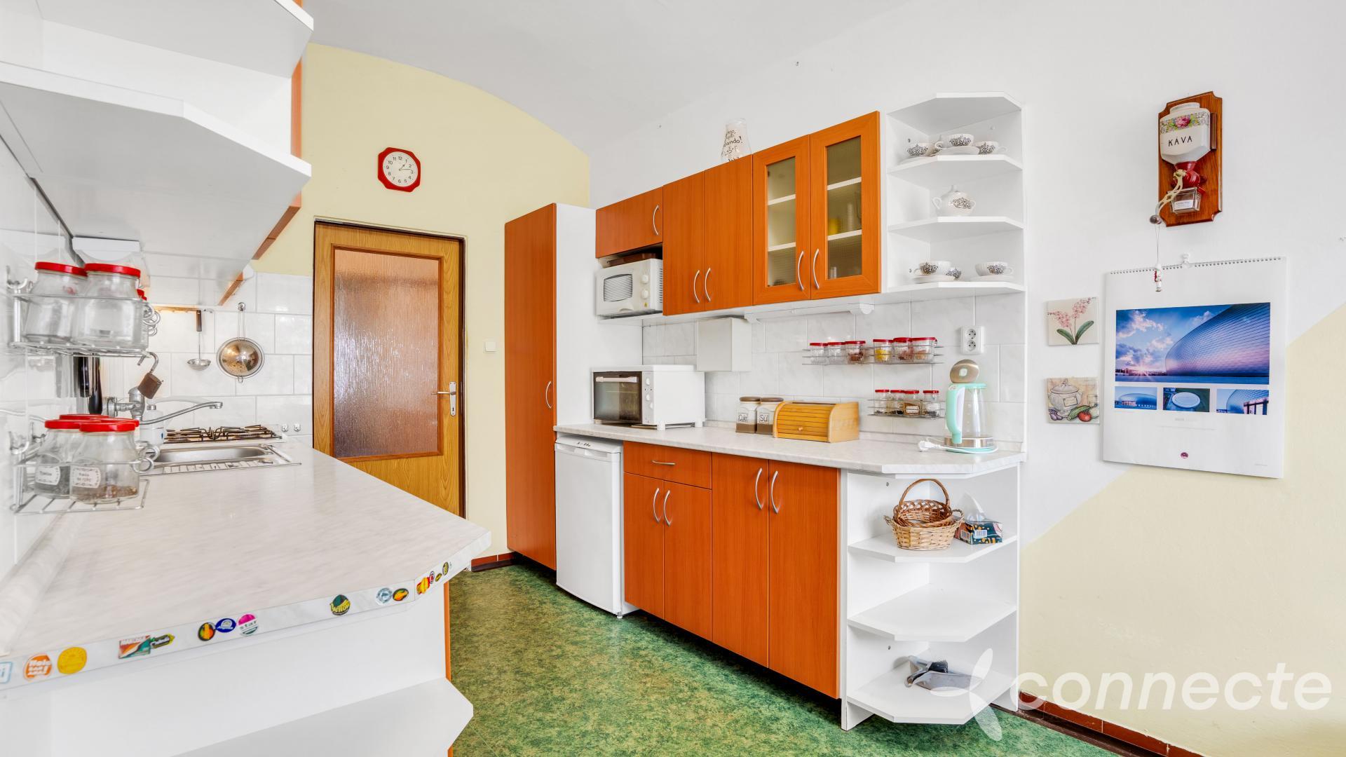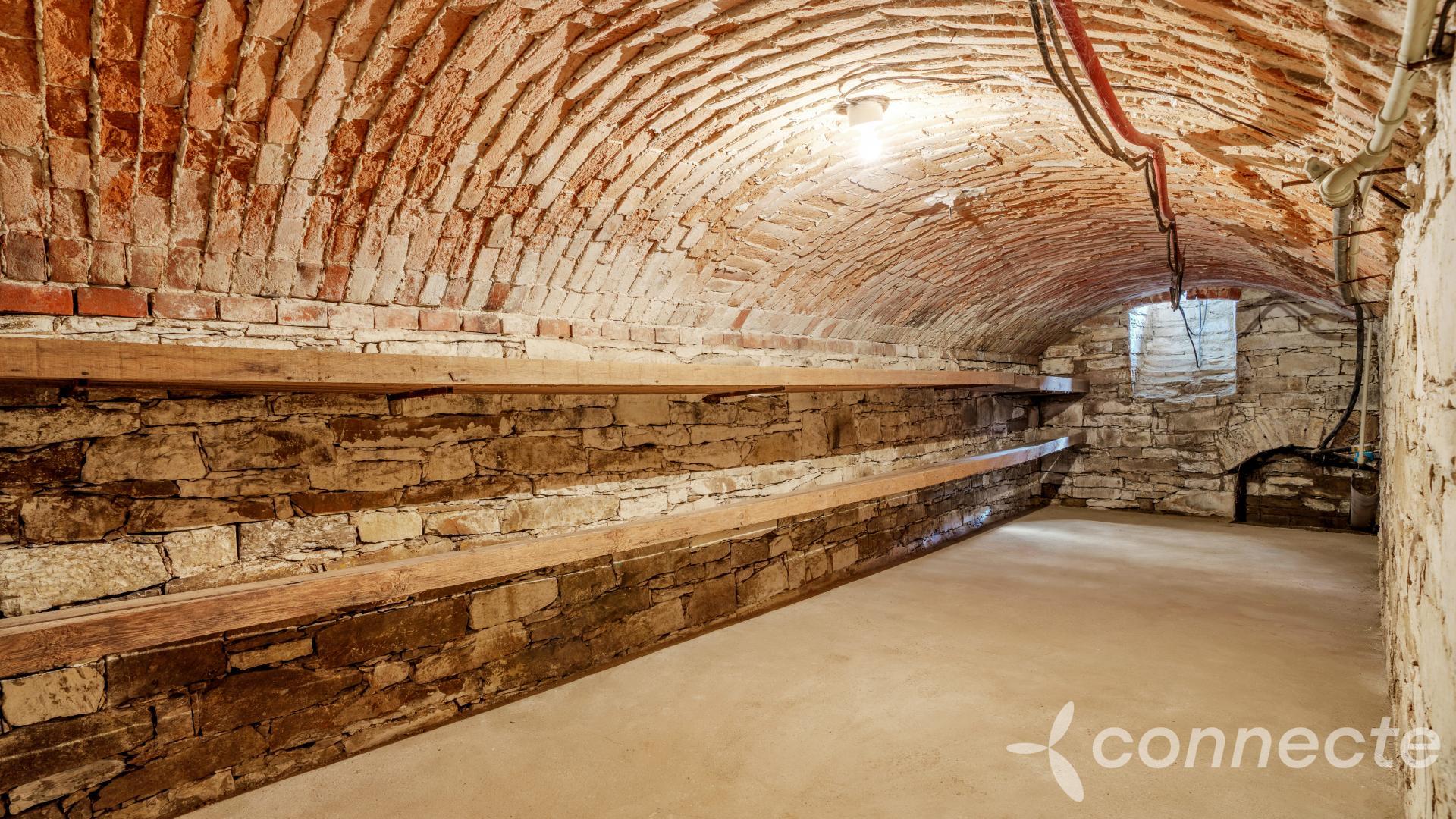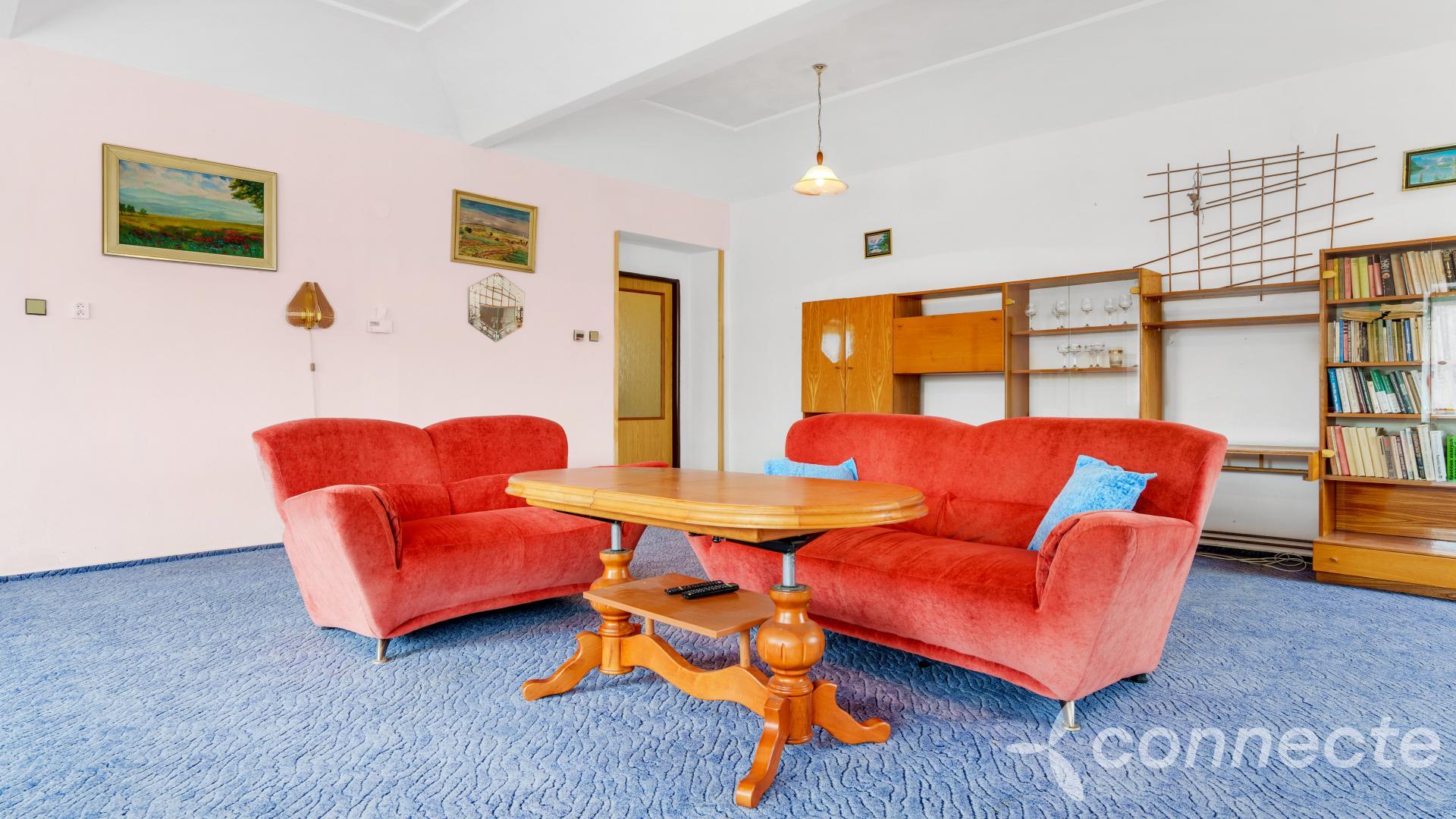 Dům má několik obytných a pracovních částí. Dispozice 3+1 zahrnuje mimořádně prostorný obývací pokoj o velikosti 60m2. V pokoji je okno připravené pro budoucí vstup na zahradu. Další pokoj o výměře 25m2 má vestavěný, plně funkční krb. Kuchyně o velikosti 17m2 má vstup do krásného klenutého suchého sklepa s vlastní studánkou. Koupelna (7m2) a WC 1m2. Z koupelny je vstup do velké kotelny 40m2, kde je plynový kotel, bojler, další úložné prostory. Další místnost v kotelně 24m2 + WC nabízí možnost přestavby na samostatnou bytovou jednotku 1+1 se vstupem z přední části domu vhodné například pro domovníka nebo firemní zázemí.
