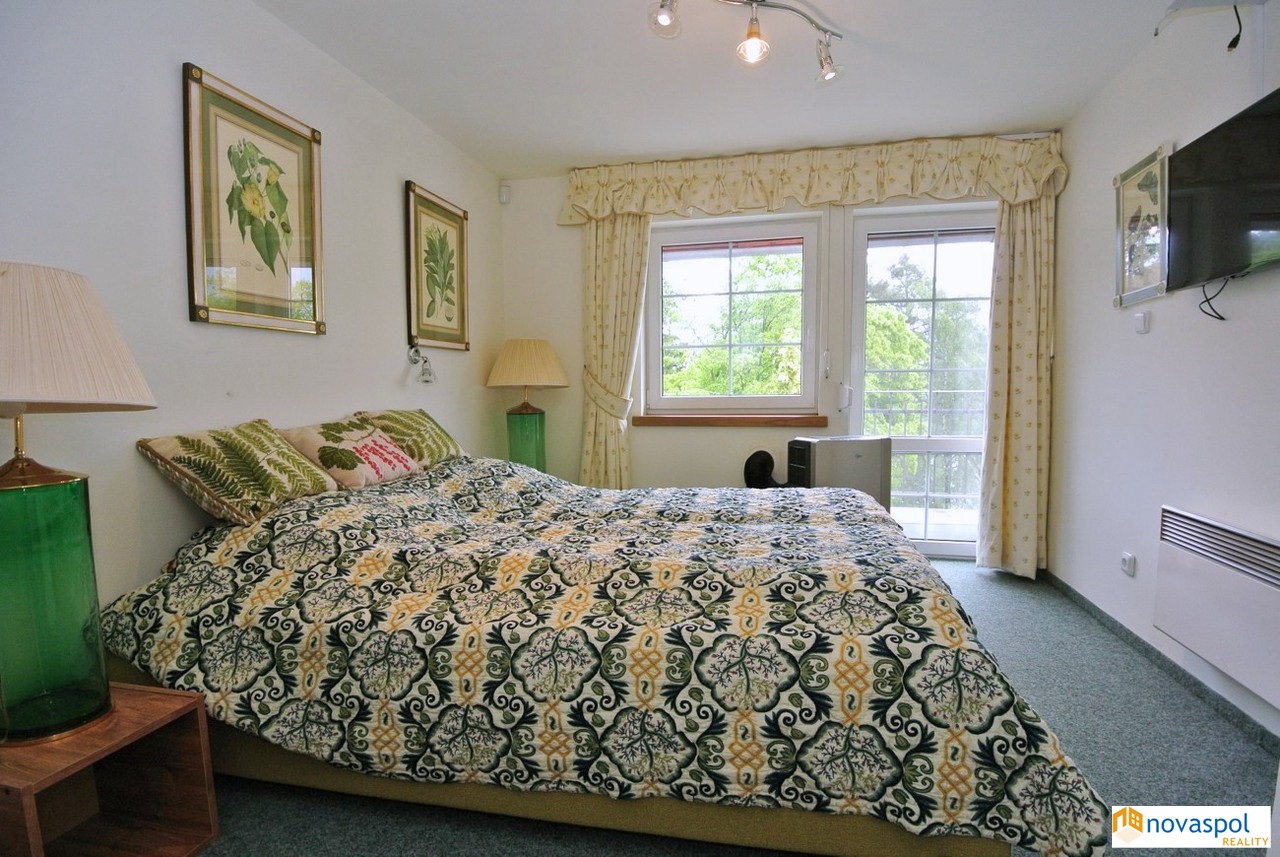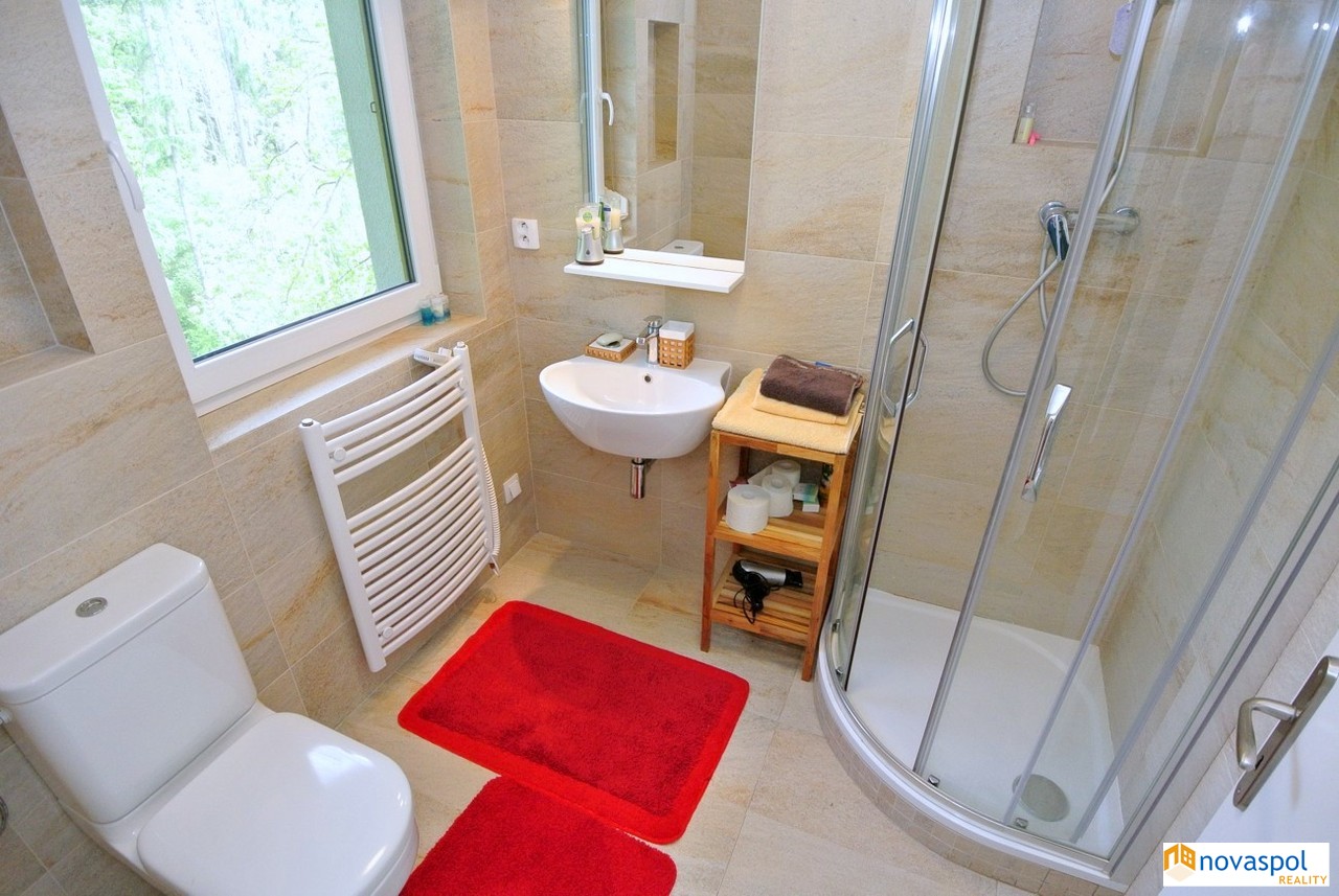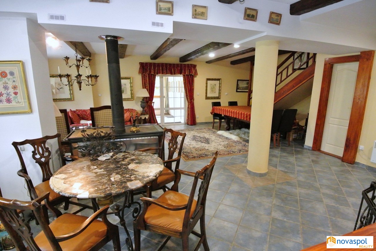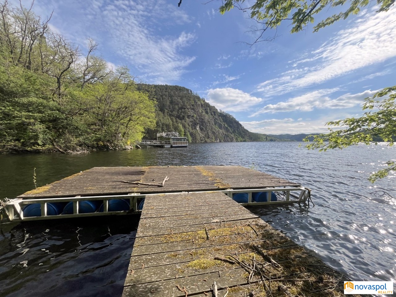Prodej novostavby 248m2 a starší nadstandardní chaty 170m2, pozemek celkem 2842 m2, Hřiměždice. Unikátní nemovitost v těsné blízkosti Slapské přehrady s přístupem na soukromé molo. Takových nemovitostí není mnoho a v nabídce se téměř neobjevují. Na exkluzivním pozemku 2842m2, na samém okraji zástavby, se nacházejí 2 rekreační objekty - chata se dvěma prostornými terasami a novostavba z roku 2016. Najdete zde i bazén, venkovní kuchyň s posezením a přístřešek pro auta.Chata: Zastavěná plocha 127 m2Užitná plocha cca 170 m2Dispozice:Přízemí: prostorný obývací pokoj s dvěma krbovými kamny a kuchyňským koutem se vstupem na terasu, ložnice s koupelnou a WC, 1 x WC samostatně, předsíň.Patro: 3 x ložnice s vlastním sociálním zařízením a vstupem na terasu.Suterén: Technická místnost s bojlerem, sklep.Topení elektrické, ohřev vody el. bojlerem. Sluneční kolektory na ohřev vody.Filtrovaná voda ze studny. Biočistička.Kamerový systém.Novostavba:Zastavěná plocha: 146m2Užitná plocha: cca. 248m2Dispozice:Přízemí: prostorný obývací pokoj s krbovými kamny a velkými posuvnými skleněnými dveřmi, kuchyň, sauna, garáž pro 2 vozidla, 2 x technická místnost, fitness a WC.Patro: 3 apartmány, každý se sociálním zařízením a jeden s kuchyňskou linkou. Z každého apartmánu vstup na venkovní terasu. Topení elektrické, ohřev vody el. bojlerem. Sluneční kolektory na ohřev vody.Filtrovaná voda ze studny.Biočistička.Objekt je střežen kamerami a bezpečnostním systémem Jablotron.Slapská přehrada je jednou z nejoblíbenějších rekreačních oblastí ve Středočeském kraji. Jižní okraj Prahy je vzdálen 50 km, cca 45 min autem.