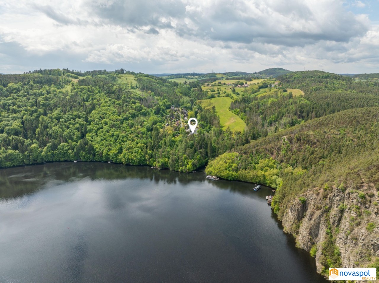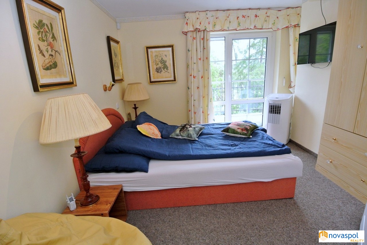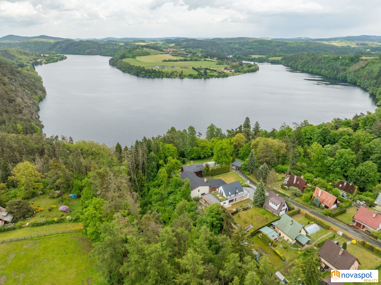 Prodej novostavby 248m2 a starší nadstandardní chaty 170m2, pozemek celkem 2842 m2, Hřiměždice. Unikátní nemovitost v těsné blízkosti Slapské přehrady s přístupem na soukromé molo. Takových nemovitostí není mnoho a v nabídce se téměř neobjevují. Na exkluzivním pozemku 2842m2, na samém okraji zástavby, se nacházejí 2 rekreační objekty - chata se dvěma prostornými terasami a novostavba z roku 2016. Najdete zde i bazén, venkovní kuchyň s posezením a přístřešek pro auta.Chata: Zastavěná plocha 127 m2Užitná plocha cca 170 m2Dispozice:Přízemí: prostorný obývací pokoj s dvěma krbovými kamny a kuchyňským koutem se vstupem na terasu, ložnice s koupelnou a WC, 1 x WC samostatně, předsíň.Patro: 3 x ložnice s vlastním sociálním zařízením a vstupem na terasu.Suterén: Technická místnost s bojlerem, sklep.Topení elektrické, ohřev vody el. bojlerem. Sluneční kolektory na ohřev vody.Filtrovaná voda ze studny. Biočistička.Kamerový systém.Novostavba:Zastavěná plocha: 146m2Užitná plocha: cca. 248m2Dispozice:Přízemí: prostorný obývací pokoj s krbovými kamny a velkými posuvnými skleněnými dveřmi, kuchyň, sauna, garáž pro 2 vozidla, 2 x technická místnost, fitness a WC.Patro: 3 apartmány, každý se sociálním zařízením a jeden s kuchyňskou linkou. Z každého apartmánu vstup na venkovní terasu. Topení elektrické, ohřev vody el. bojlerem. Sluneční kolektory na ohřev vody.Filtrovaná voda ze studny.Biočistička.Objekt je střežen kamerami a bezpečnostním systémem Jablotron.Slapská přehrada je jednou z nejoblíbenějších rekreačních oblastí ve Středočeském kraji. Jižní okraj Prahy je vzdálen 50 km, cca 45 min autem.