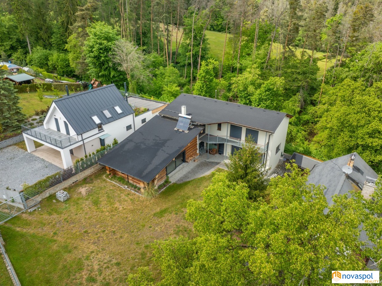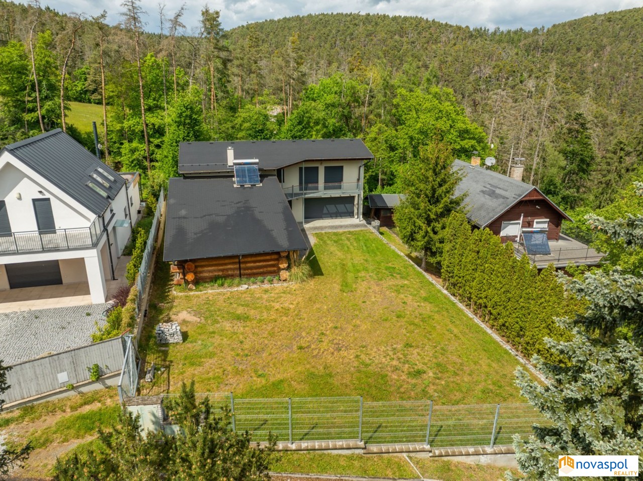 Prodej novostavby 248 m2 a nadstandardní chaty 170 m2 a , pozemek 2842 m2, Hřiměždice