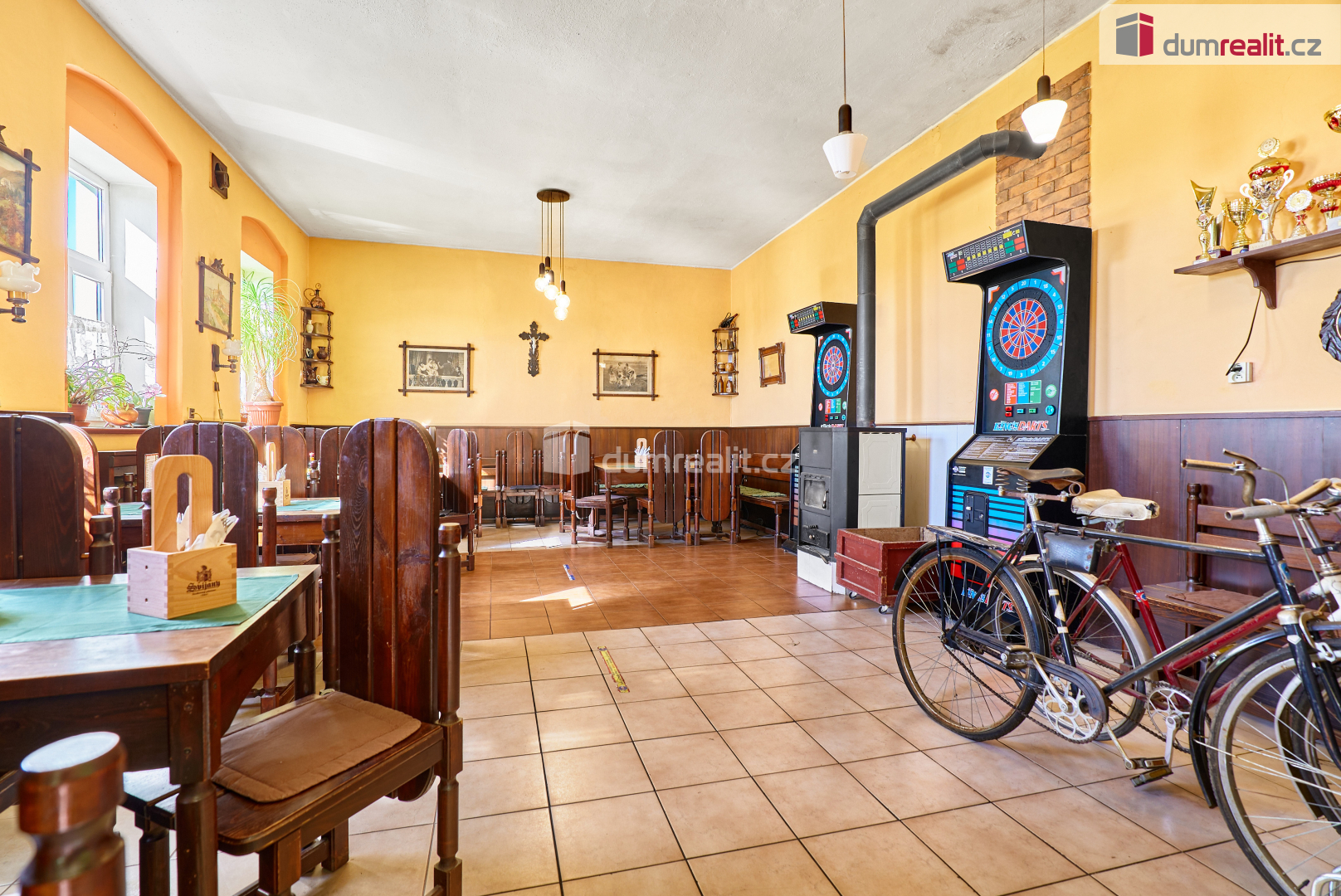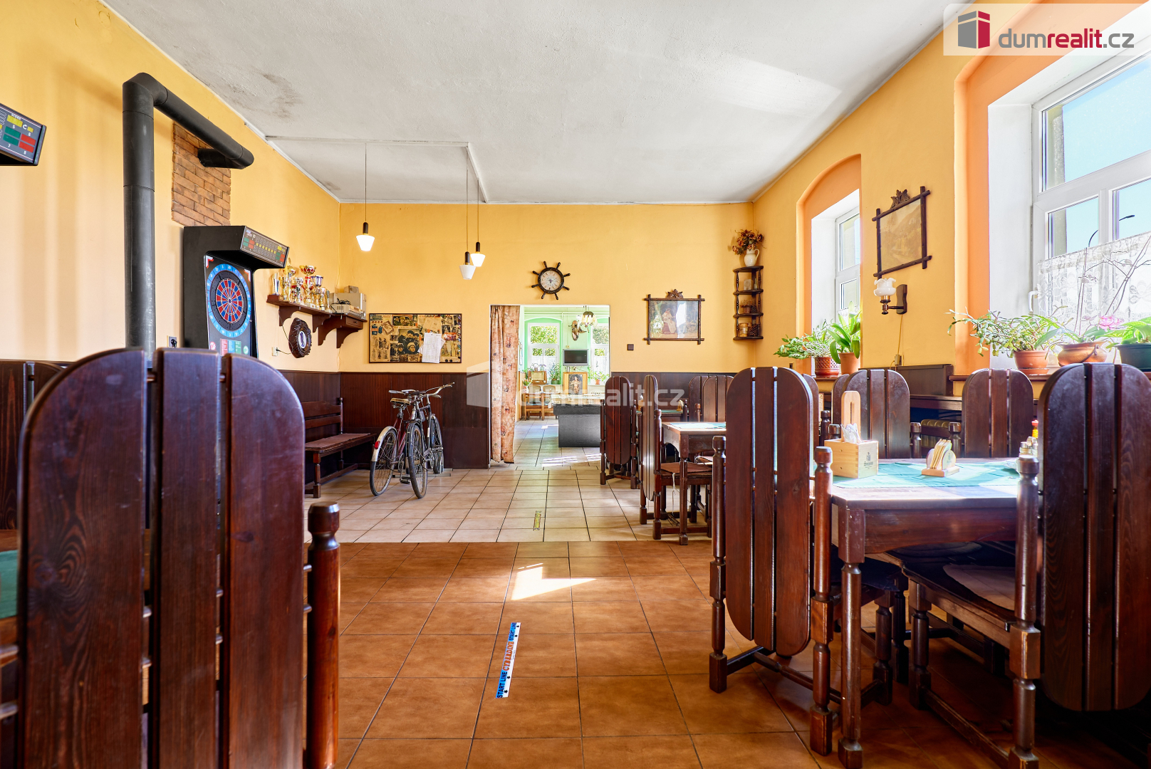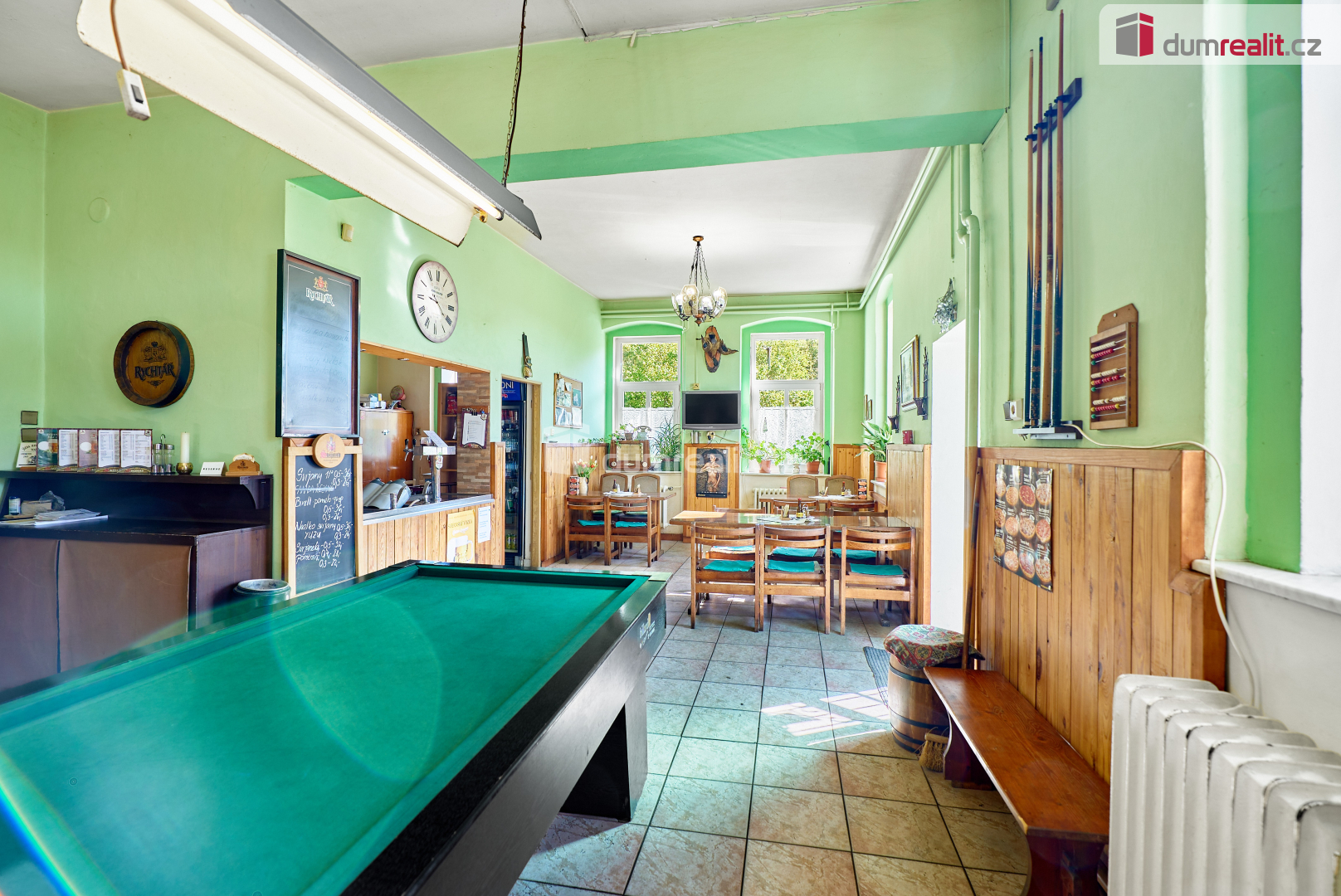 Naše společnost Vám zprostředkuje prodej zavedené a oblíbené restaurace s penzionem "Rafanda" v obci Hroznětín na úpatí Krušných hor. V přízemí objektu je restaurace (25 míst) a salonek (35 míst), výčep, kuchyně, sklady, WC a kotelna, ve které je umístěn plynový kotel a el. bojlery. V prostoru restaurace jsou krbová kamna s výměníkem. V 1. patře jsou 4 pokoje s celkem 11 lůžky, společné sociální zařízení (WC a sprchy) a kuchyňský kout. V podkroví je byt 2+1. Sklep je využíván jako sklad nápojů. Na zahradě je venkovní posezení se 60 místy a samovýčep pro cyklisty a turisty. Budova je zateplená, na části je nová střecha. Objekt leží na hlavním silničním tahu do Krušných hor, v těsné blízkosti cyklostezky, která je součástí místní široké sítě cyklistických, turistických a běžeckých tras, vlakové a autobusové stanice. V obci je všechna potřebná občanská vybavenost. Možnost investičně využít jako ubytovnu pro zaměstnance s vlastní jídelnou. Koupě je možná i kombinací s jinou nemovitostí. Ev. číslo: 647398.
