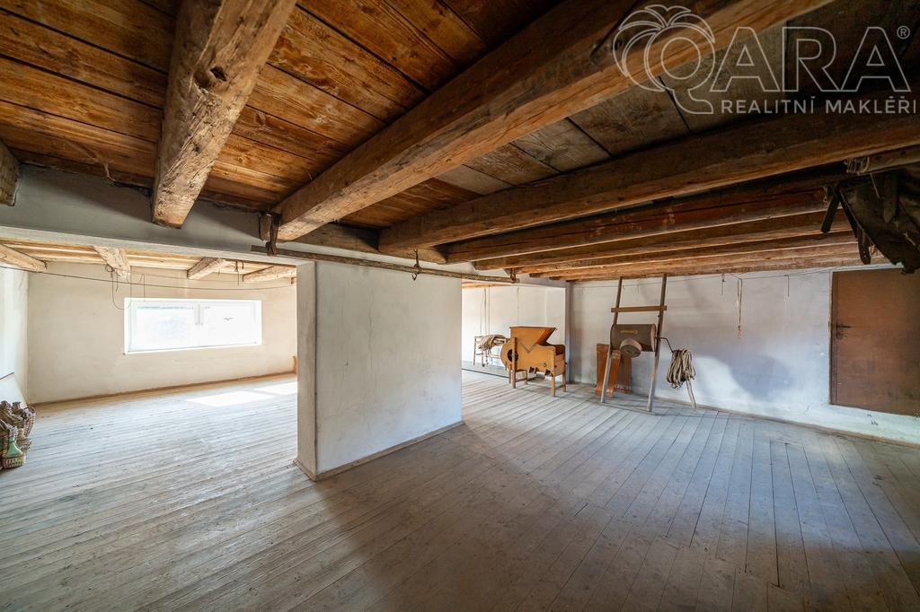 Pod střechou je velký půdní prostor s výškou nad 2 m, ideální pro půdní vestavbu nebo další úpravy.