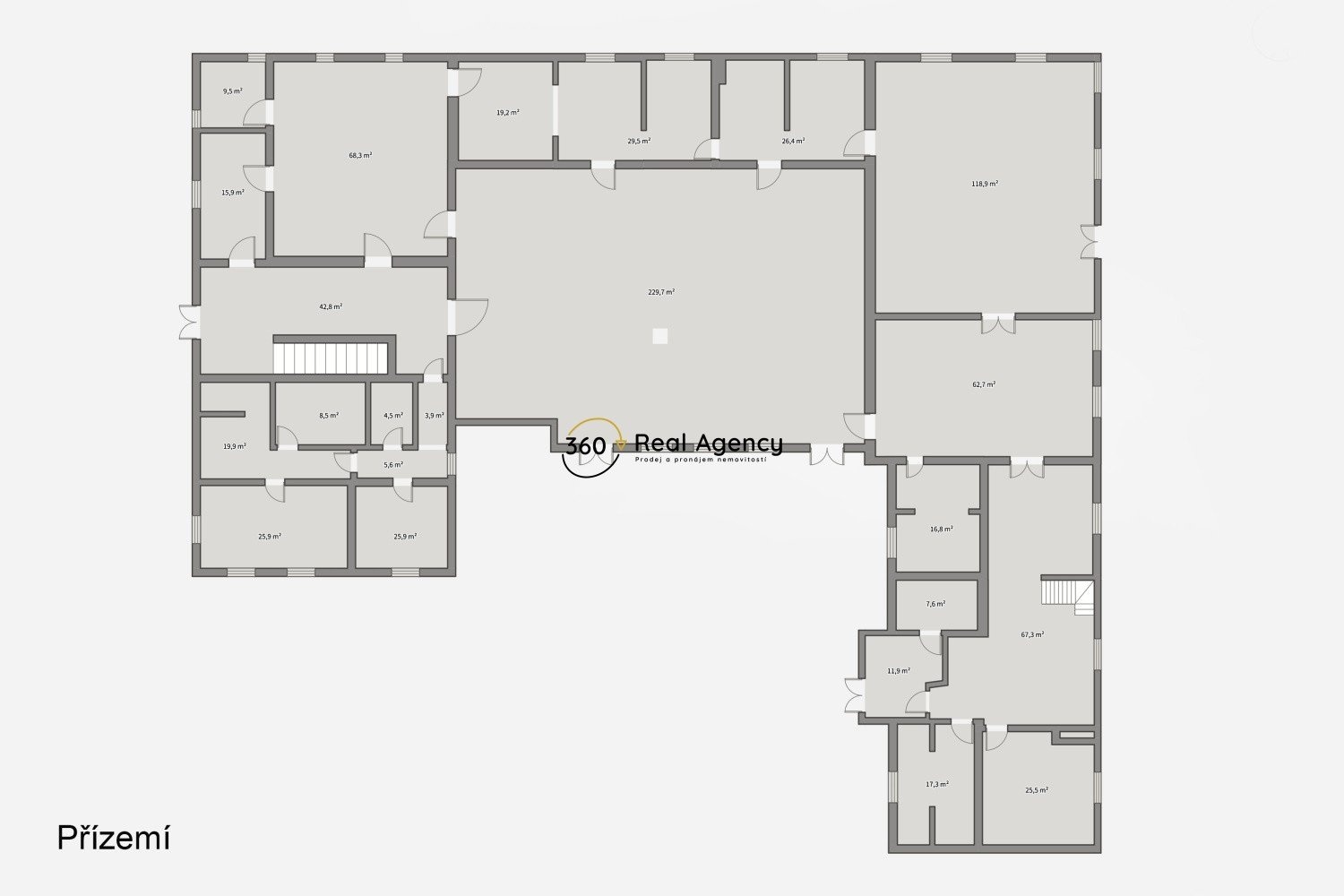 Tento unikátní komplex tvoří dvě propojené hlavní budovy, které dohromady nabízí celkovou zastavěnou plochu téměř 1 200 m2. Díky jejich propojení vzniká soudržný celek s mnoha možnostmi využití. Aktuálně je nemovitost využívána ke komerčním účelům, ale druhé patro je připraveno pro vybudování dvou až tří samostatných bytů – ideální pro zaměstnance, vlastní rodinné bydlení nebo investici do pronájmu.