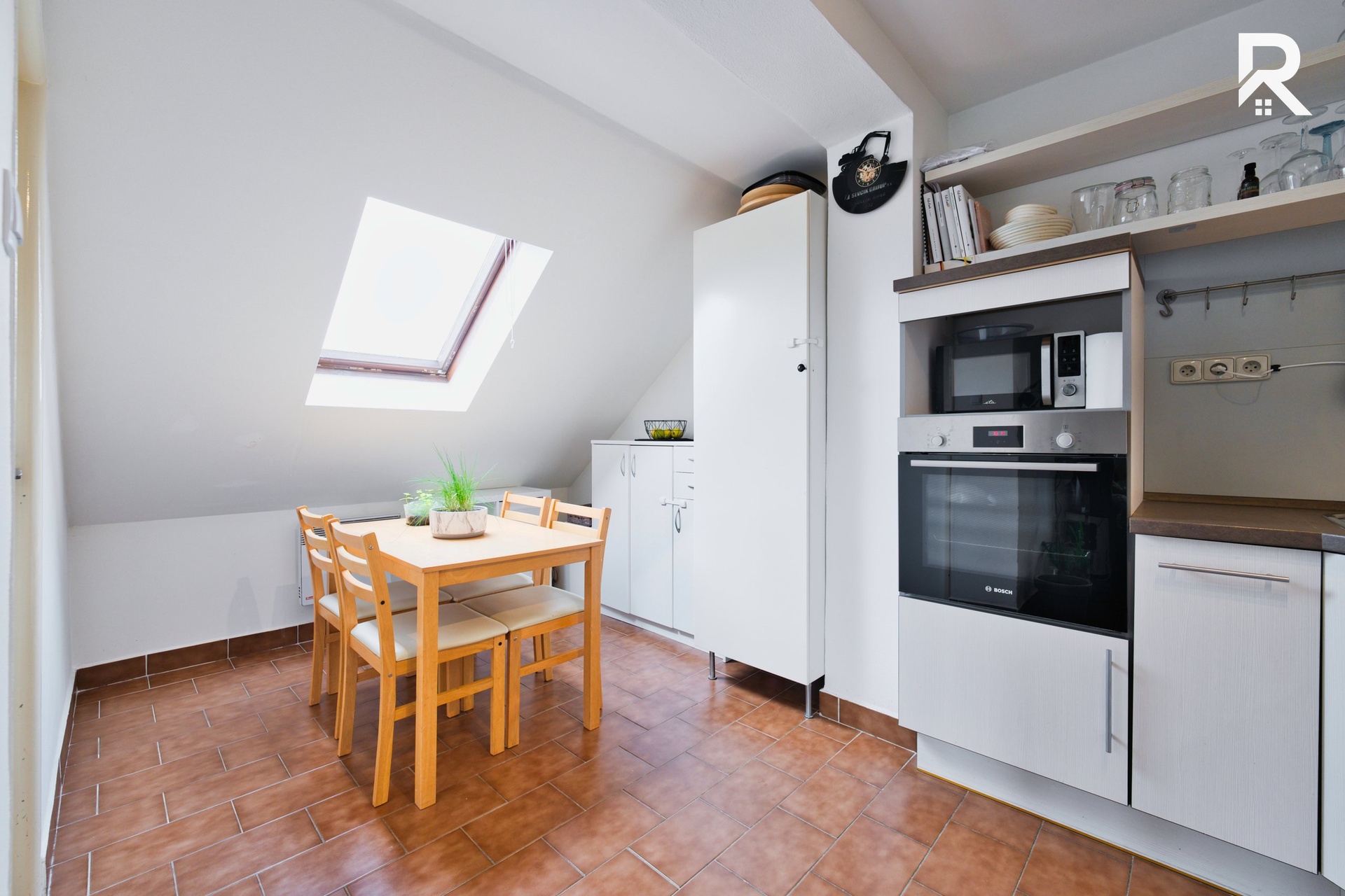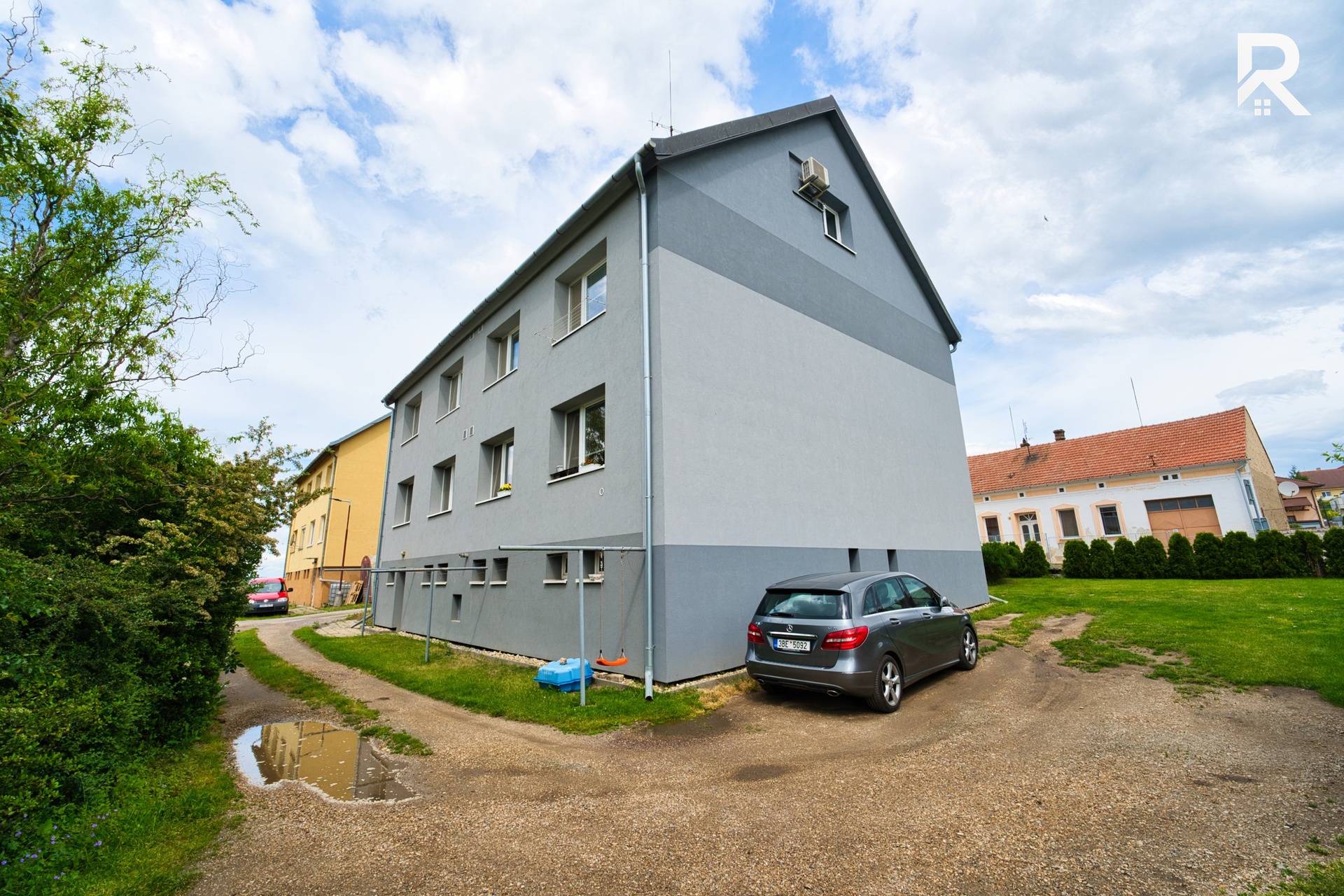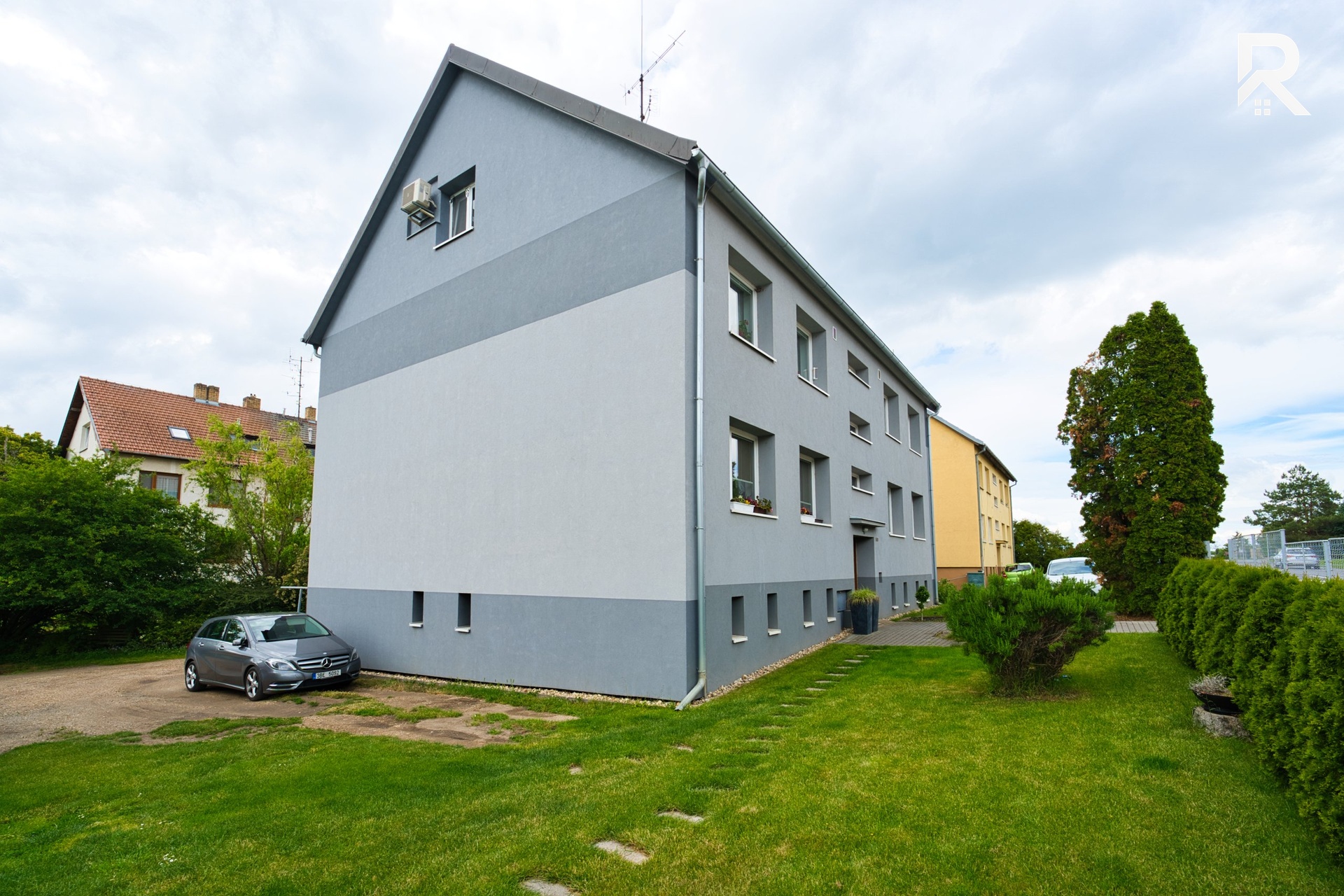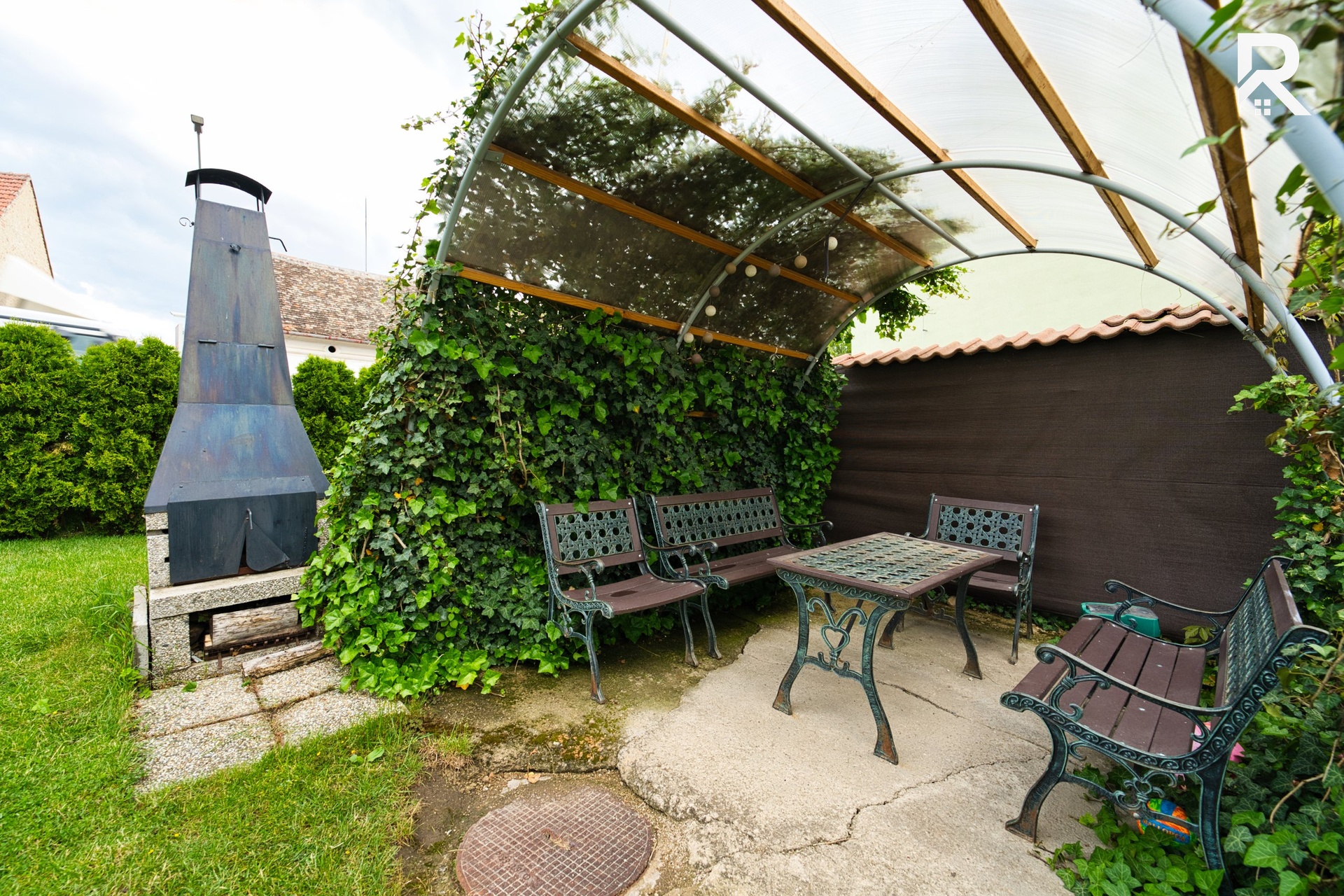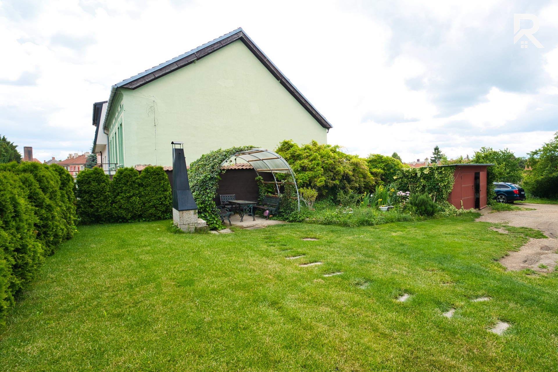 Přímo u bytu je navíc k dispozici společná zahrada s posezením, která vytváří ideální místo pro letní grilování s rodinou a přáteli.