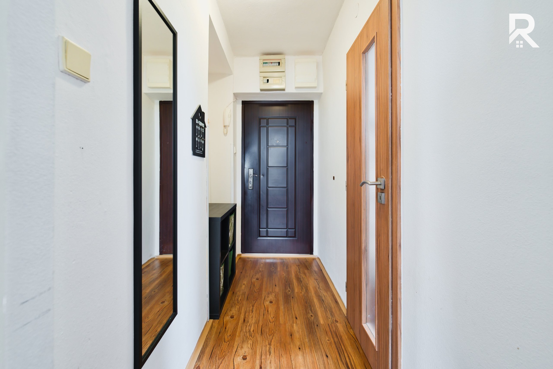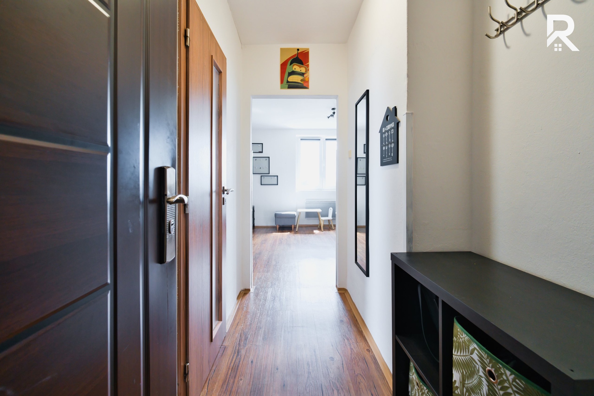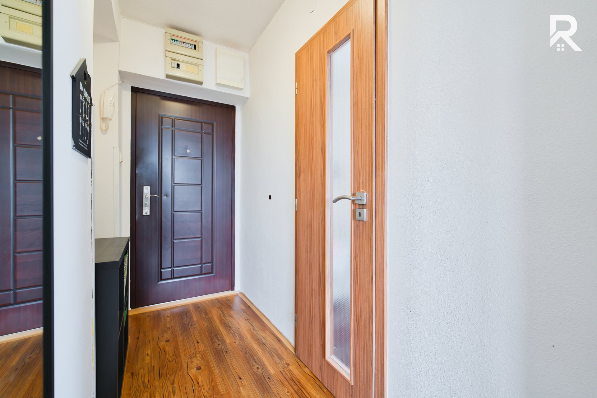 Při příchodu do bytu se ocitnete v předsíni, která Vás přivítá ve Vašem novém domově. Hned při vstupu na Vás čeká šikovně řešená koupelna s WC a vanou po zdařilé rekonstrukci. Z předsíně se pak plynule dostanete do obývacího prostoru s kuchyňským koutem, kde je Vám linka plně k dispozici včetně spotřebičů jako je například sklokeramická deska vč. trouby či vestavěná myčka Bosch. Zbyde zde také dostatek místa na jídelní kout i lednici. Nemovitost také poskytuje 2 samostatné ložnice, které si můžete do vybavit dle Vašich představ.