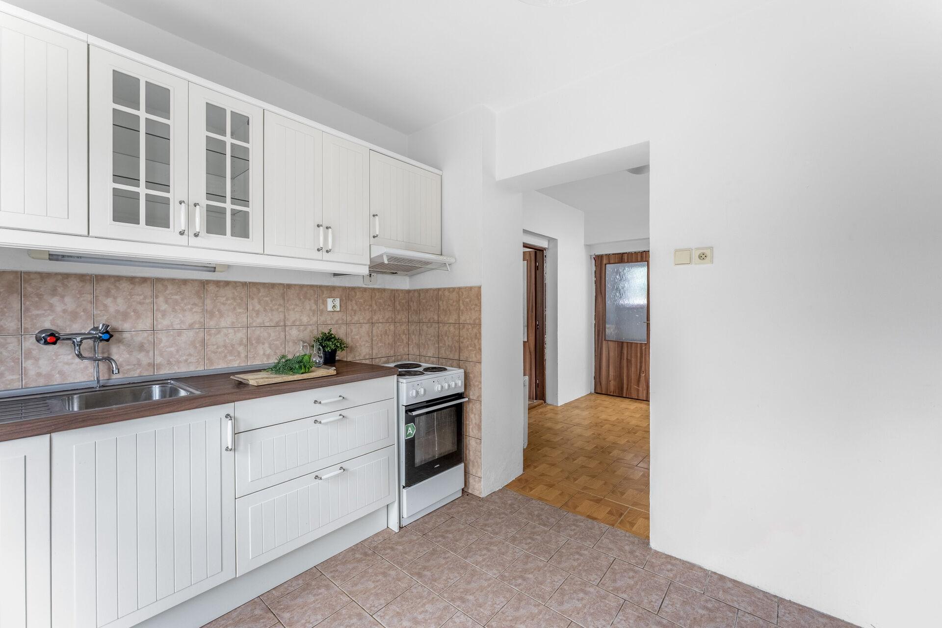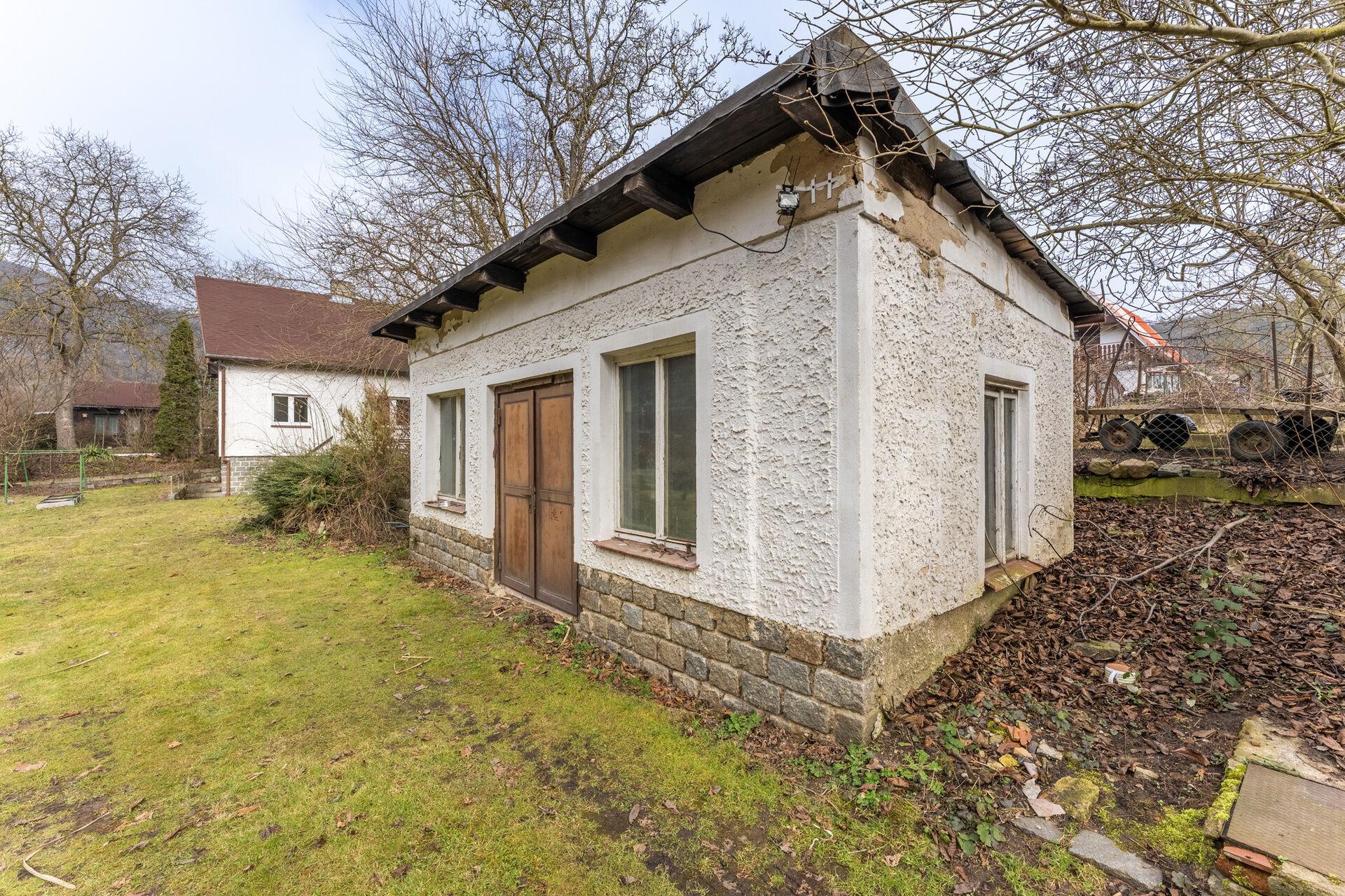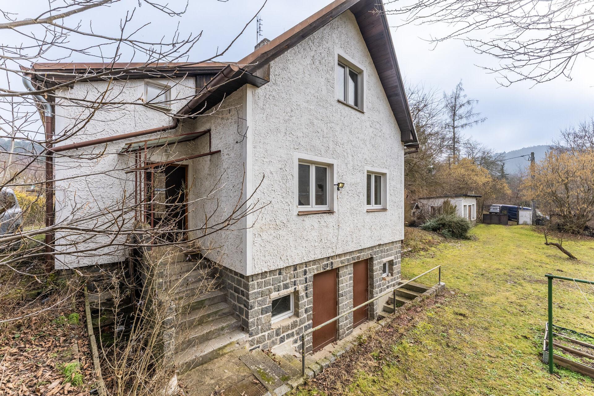 Exkluzivně k prodeji nabízíme rodinný dům na konci klidné ulice v Husinci, pouze 10 kilometrů od Prahy. Jedná se o dům z roku 1970, který od té doby prošel řadou rekonstrukcí, aktuální dispozice domu je 2+1 a vybízí k úpravě, pro maximální využití potenciálu tohoto domu. Užitná plocha je 80 m (navíc přes 30m2 sklepních prostor a cca 18 m2 úložného prostoru v podkroví), plocha pozemku pak v součtu činí krásných 1203 m2, na pozemku kromě domu stojí také dílna o výměře zhruba 25 m2. Z rozlehlé zahrady je výhled nejen na zeleň, ale také na skálu a řeku. Nemovitost se nachází v záplavovém území zóny 3, v dnešní době je však plně pojistitelná a hlavně financovatelná hypotečním úvěrem. Provozní náklady se vejdou do částky 5000,- Kč měsíčně. O výtapění domu se stará plynový kotel zn. Viessmann z roku 2014, ten díky integrovanému zásobníku zajistí také ohřev teplé vody. Voda je dodávaná z veřejného vodovodu a od roku 2014 je v domě také tlaková kanalizace s čerpadlem. Základy domu jsou z betonu, konstrukce pak cihlová. Rozvody elektřiny jsou po rekonstrukci.