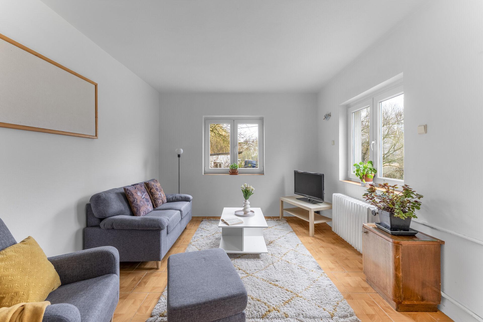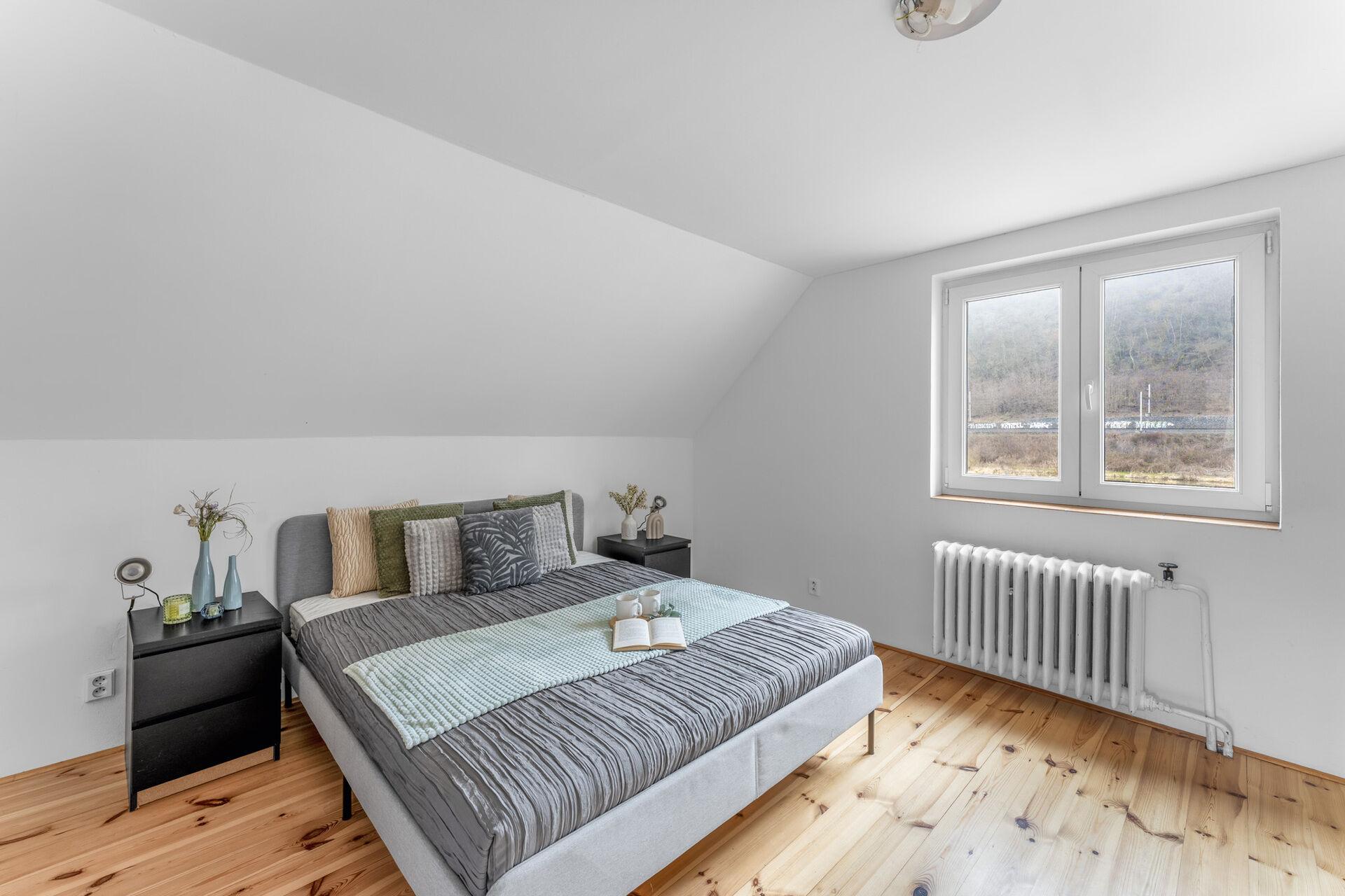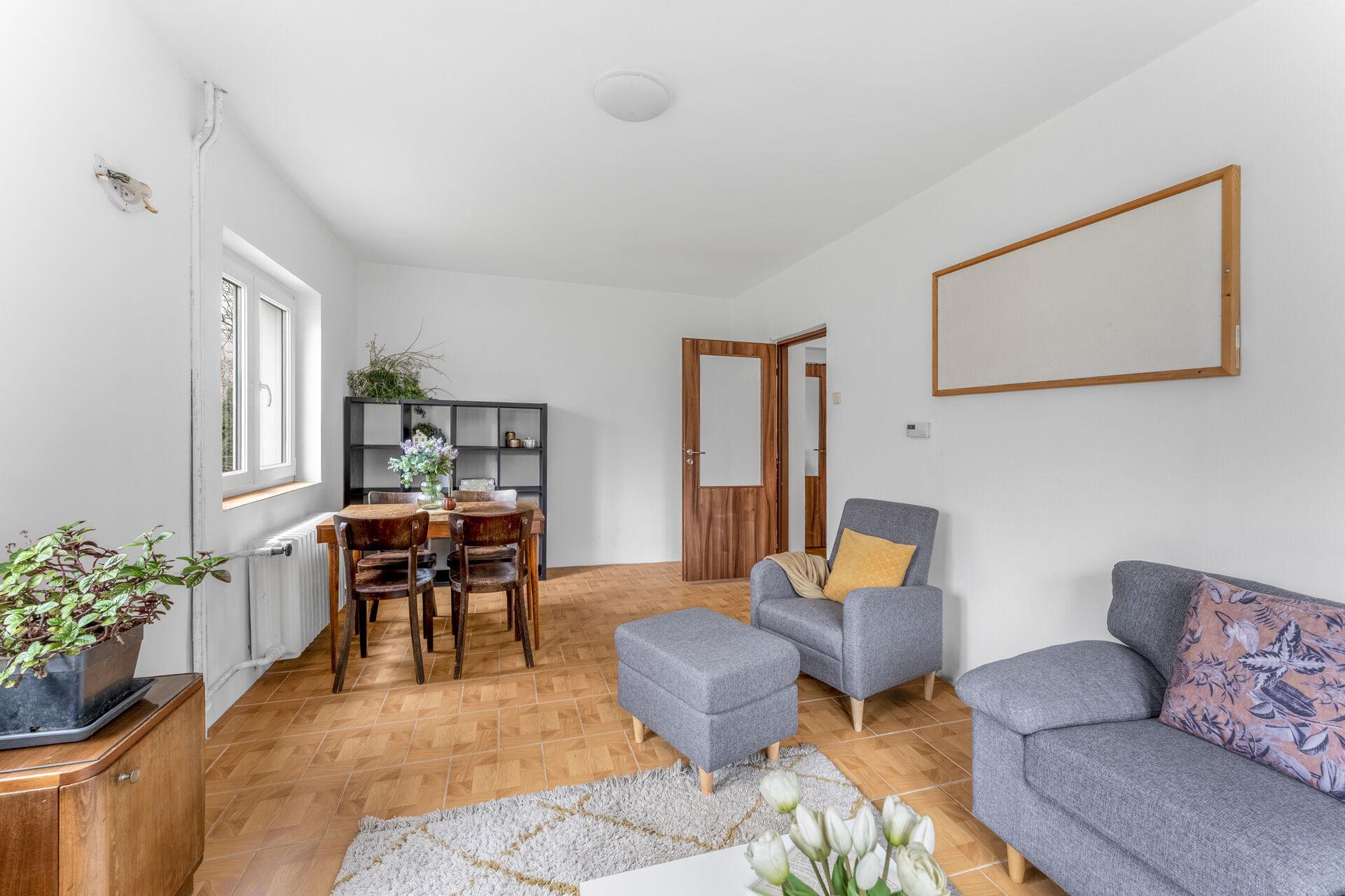 Exkluzivně k prodeji nabízíme rodinný dům na konci klidné ulice v Husinci, pouze 10 kilometrů od Prahy. Jedná se o dům z roku 1970, který od té doby prošel řadou rekonstrukcí, aktuální dispozice domu je 2+1 a vybízí k úpravě, pro maximální využití potenciálu tohoto domu. Užitná plocha je 80 m (navíc přes 30m2 sklepních prostor a cca 18 m2 úložného prostoru v podkroví), plocha pozemku pak v součtu činí krásných 1203 m2, na pozemku kromě domu stojí také dílna o výměře zhruba 25 m2. Z rozlehlé zahrady je výhled nejen na zeleň, ale také na skálu a řeku. Nemovitost se nachází v záplavovém území zóny 3, v dnešní době je však plně pojistitelná a hlavně financovatelná hypotečním úvěrem. Provozní náklady se vejdou do částky 5000,- Kč měsíčně. O výtapění domu se stará plynový kotel zn. Viessmann z roku 2014, ten díky integrovanému zásobníku zajistí také ohřev teplé vody. Voda je dodávaná z veřejného vodovodu a od roku 2014 je v domě také tlaková kanalizace s čerpadlem. Základy domu jsou z betonu, konstrukce pak cihlová. Rozvody elektřiny jsou po rekonstrukci.