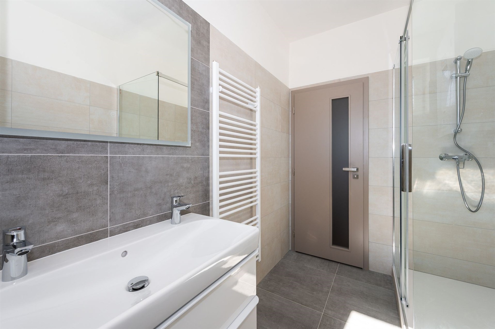 ___ Skutečně pěkný a velkými okny prosvětlený byt, je vybaven v pěkném standardu. Plynové kondenzační kotle umístěné v kotelně v suterénu domu nabízejí podlahové vytápění a v obou pokojích je rovněž klimatizační jednotka, která v létě chladí a v zimně může topit. Vstupní dveře s bezpečnostním kováním, vnitřní dveře s obložkovou zárubní. Plastová okna s izolačním trojsklem, plovoucí podlahy s vysokou odolností. Značkové vybavovací předměty v koupelně, velkoformátová keramická dlažba i obklady. Příprava na instalaci kuchyňské linky s digestoří (kuchyně není v ceně). Dekory a barevnost si můžete ve třech studiích doladit podle vašich představ. K bytu je možné zakoupit garážové stání v suterénu, nebo venkovní parkovací stání. Nízké provozní náklady na bydlení, a to jak díky jeho uspořádání, tak i díky použitým materiálům. Dům je zařazen v energetické třídě B, tedy velmi úsporný.