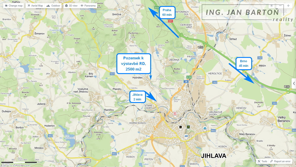 Do Hybrálce zajíždí pravidelně jihlavská MHD, linka č. 8 a zastávka leží na dohled od pozemku. Do Prahy nebo Brna se po dálnici D1 dostanete cca za hodinku. Další informace rád podám na osobní prohlídce, těším se s Vámi na viděnou.