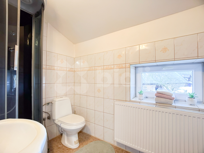 Přízemí: při vstupu do domu je prostorná chodba, ze které se dostanete do technické místnosti, kde se nachází elektrický kotel na pelety a velká akumulační nádrž s objemem 999 l. Dále se zde nachází kuchyň, jídelní místnost, menší sklípek na uskladnění potravin, obývací pokoj s krbovými kamny pro příjemnou zimní atmosféru, ložnice a koupelna s wc a vanou.