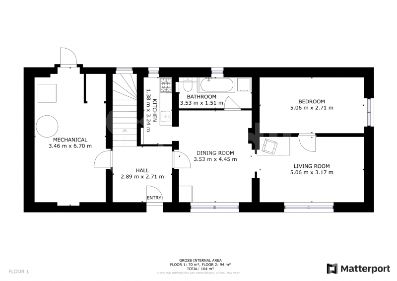 Celková podlahová plocha činí 185 m2. Za domem se nachází zahrada o výměře 461 m2.