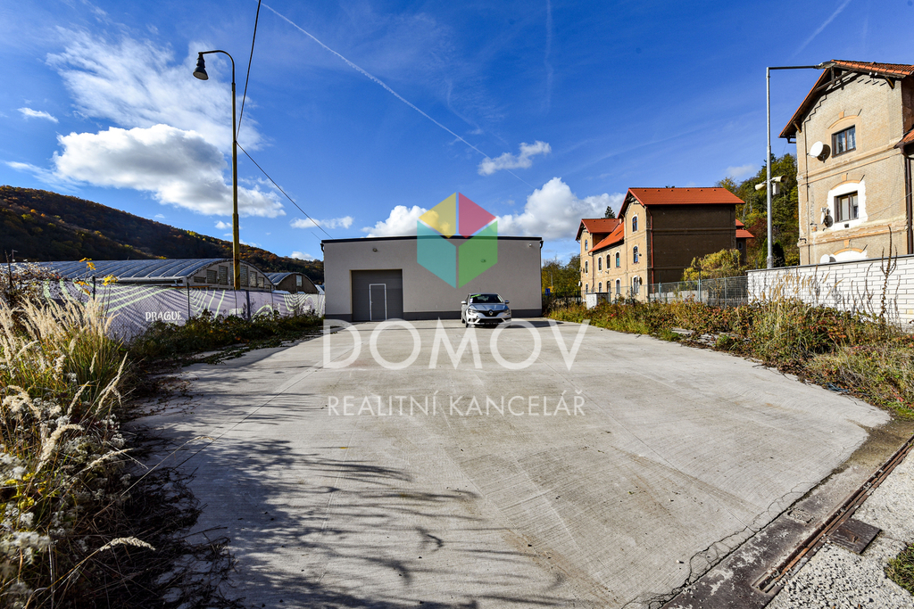 K objektu dále náleží oplocený pozemek o výměře 819 m², vhodný jako venkovní skladovací či manipulační plocha. Parkování je možné přímo na pozemku.