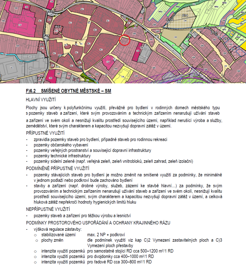 Dle územního plánu je v této lokalitě umožněna výstavba až o 2 nadzemních podlažích + podkroví, což otevírá široké možnosti využití: