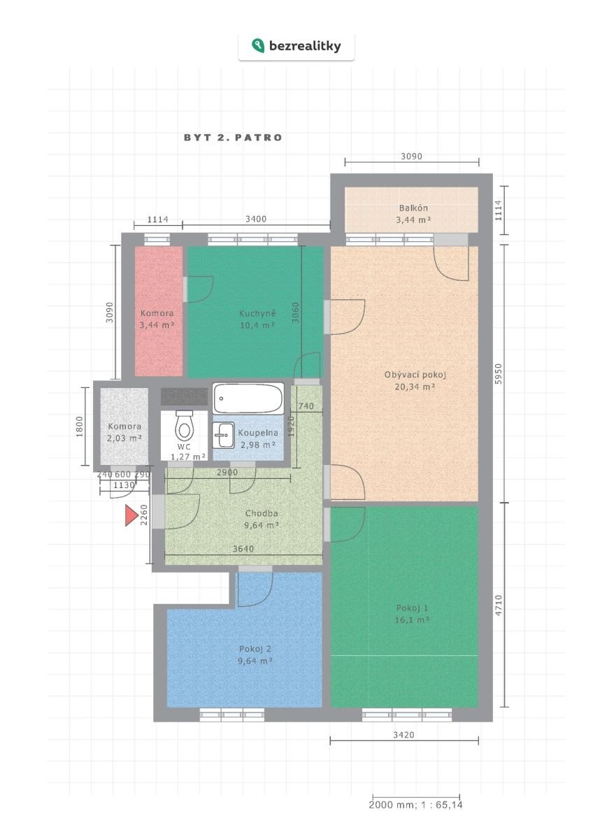• Obývací pokoj – 20,34 m² (se vstupem na balkon)