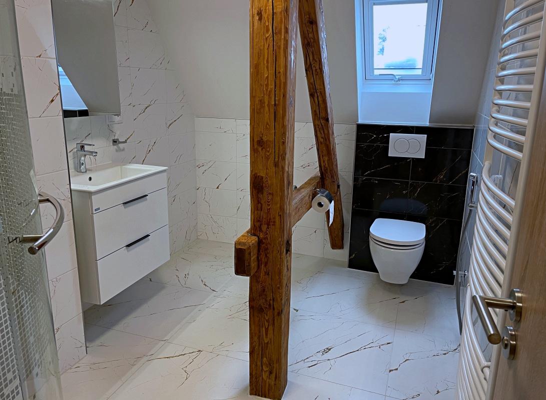 Standard bytu zahrnuje vinylové podlahy, nová eurookna s trojskly, protipožární bezpečnostní vstupní dveře a moderní technické zázemí odpovídající současným nárokům na komfortní bydlení.